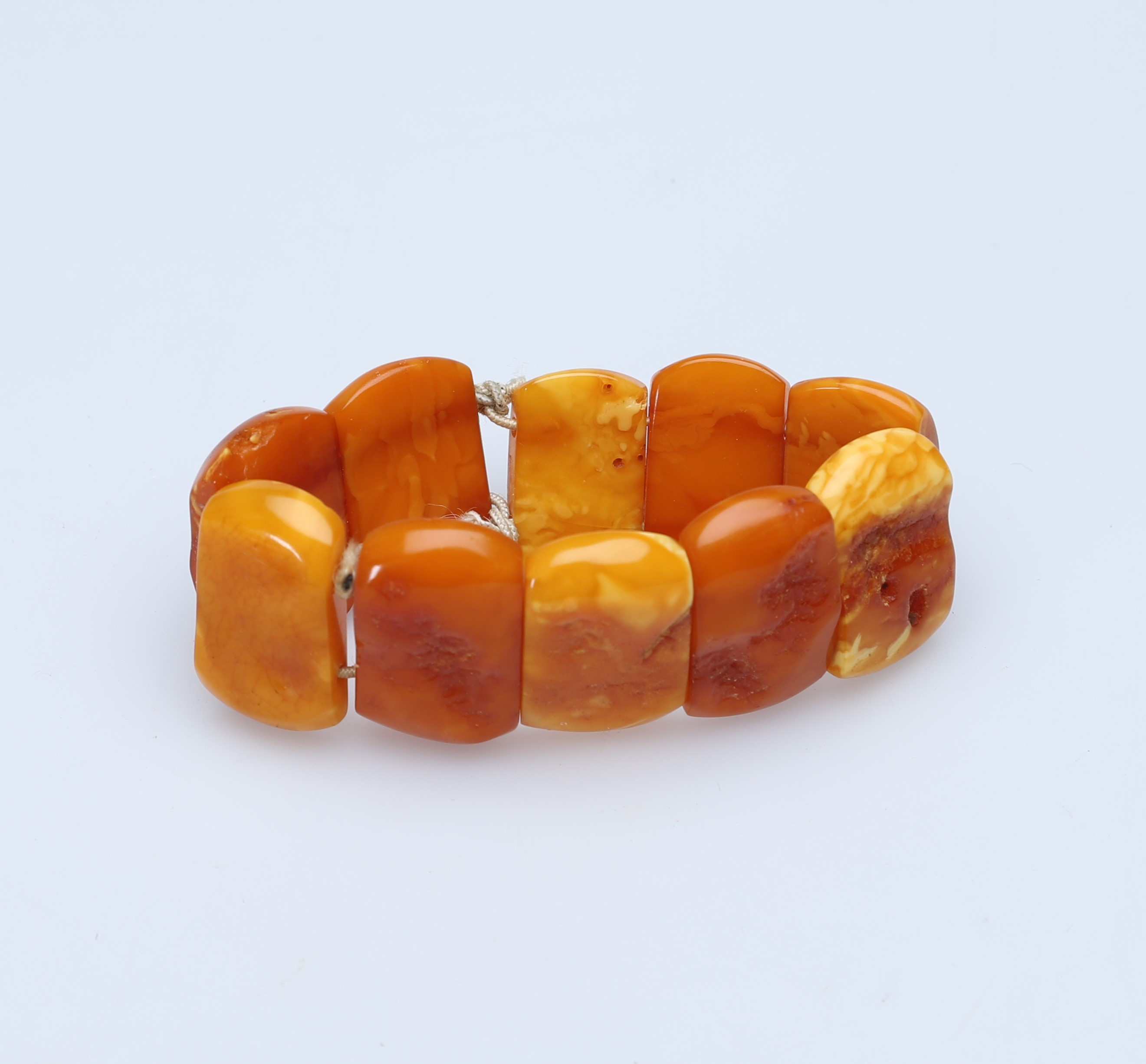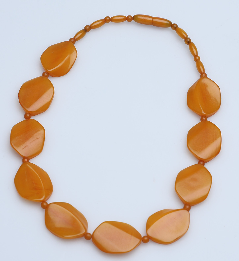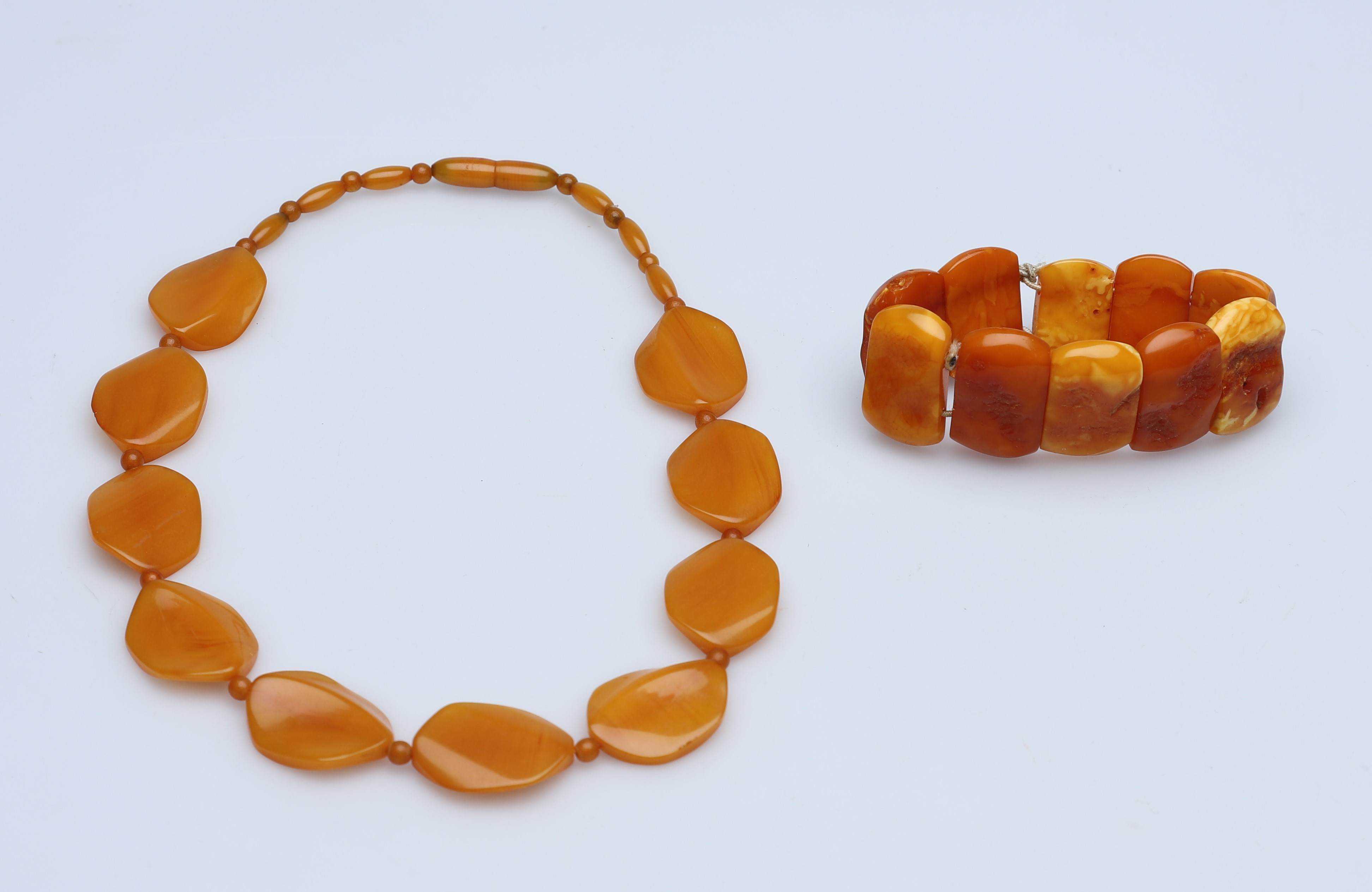3652771. NECKLACE and BRACELET, cut plates amber.