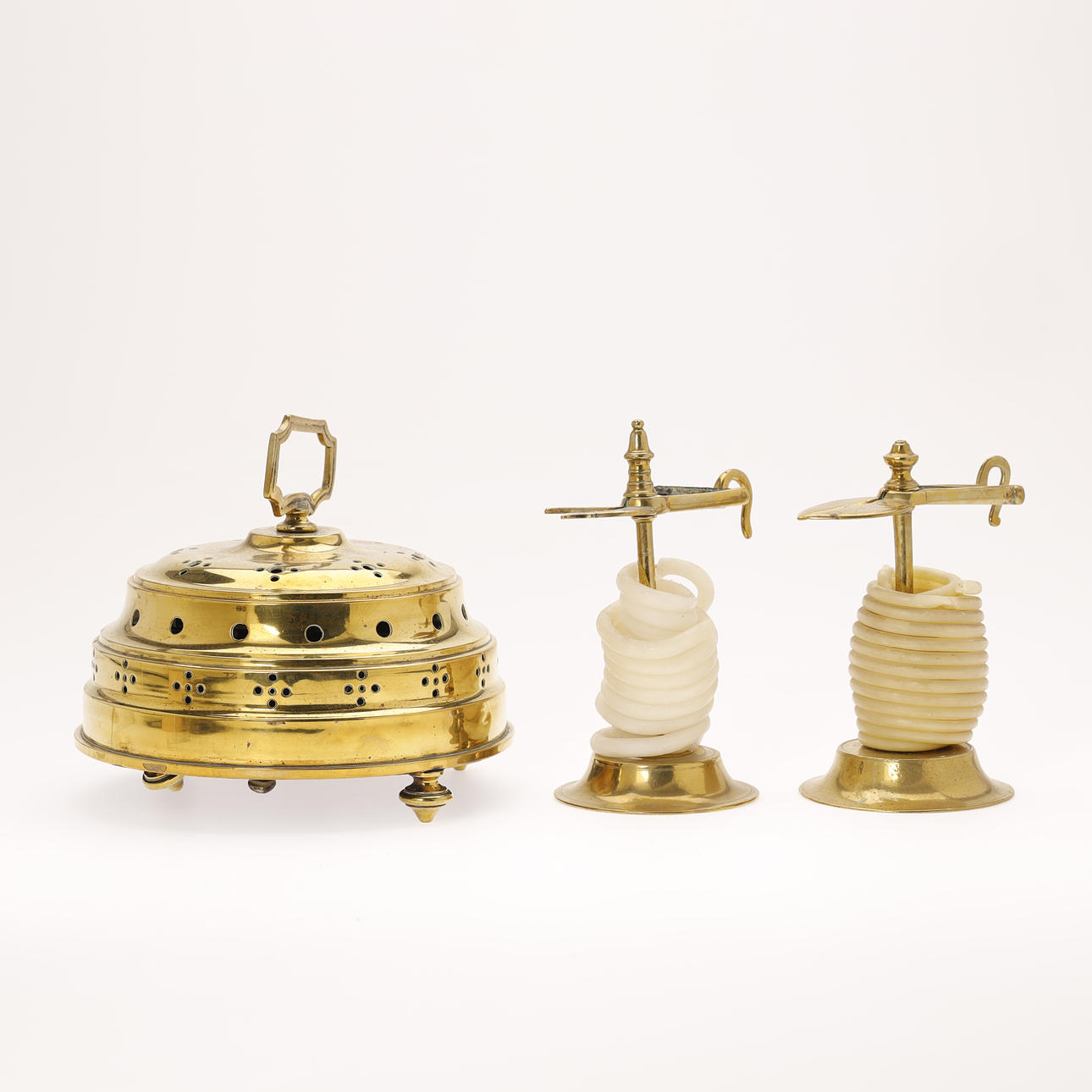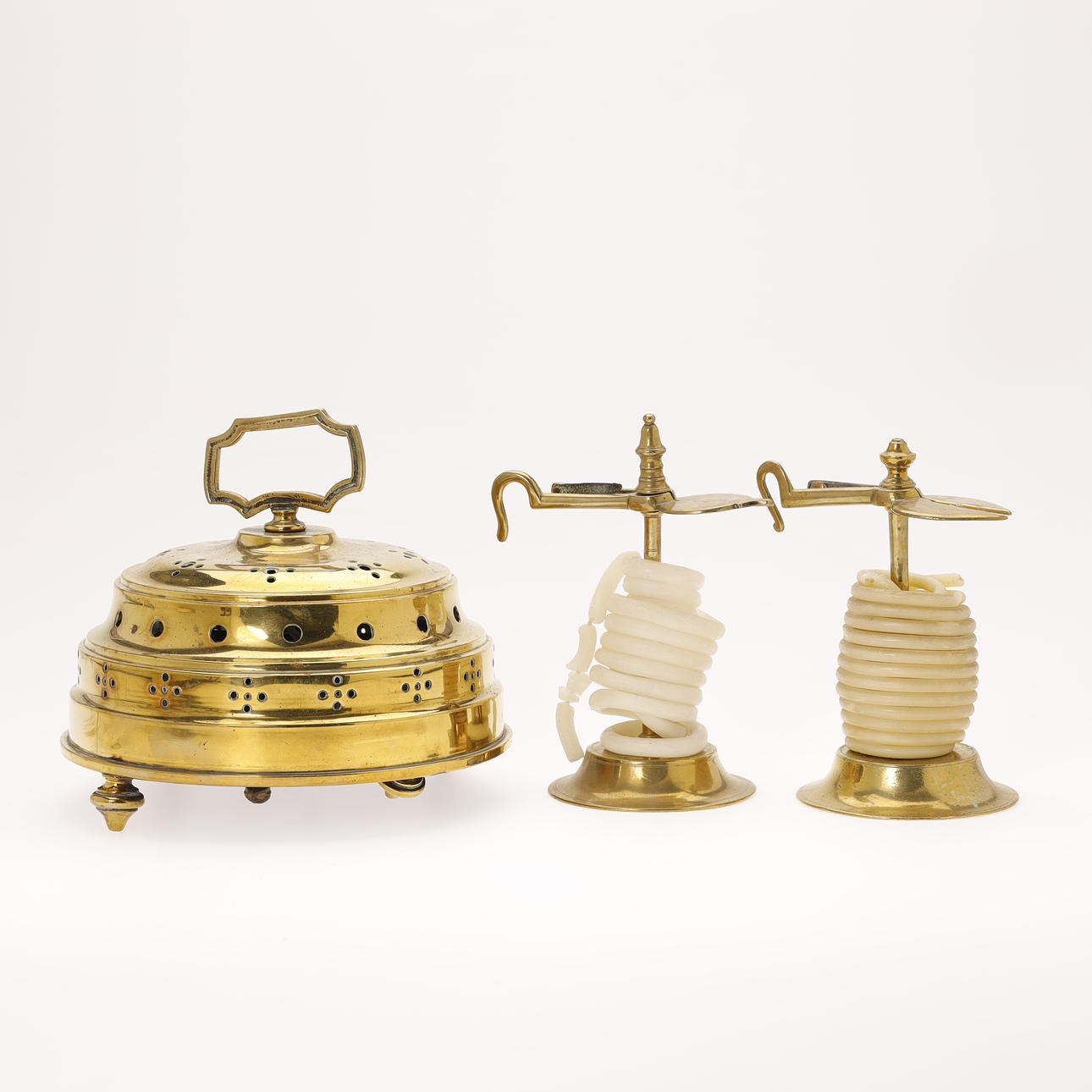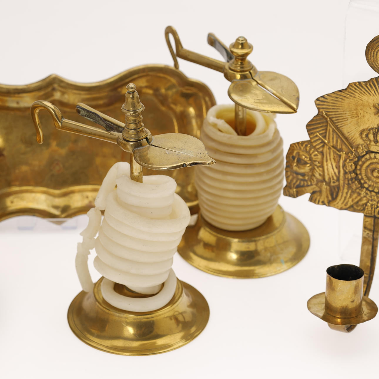 3654098. Altar bell, two pillars, light shield and brass tray. (6th).