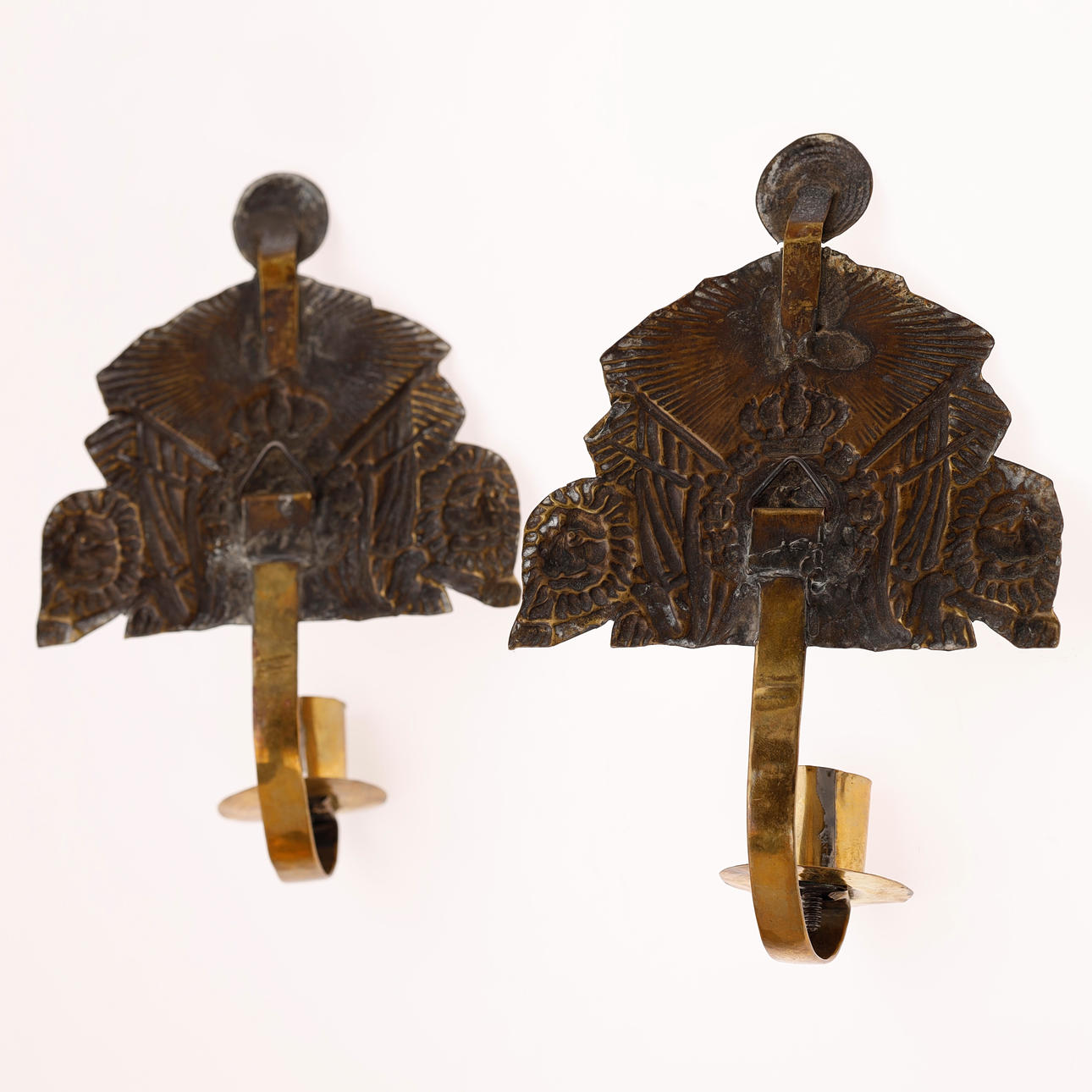 Pair of brass light shield H. 18 cm B. 12.5 cm.