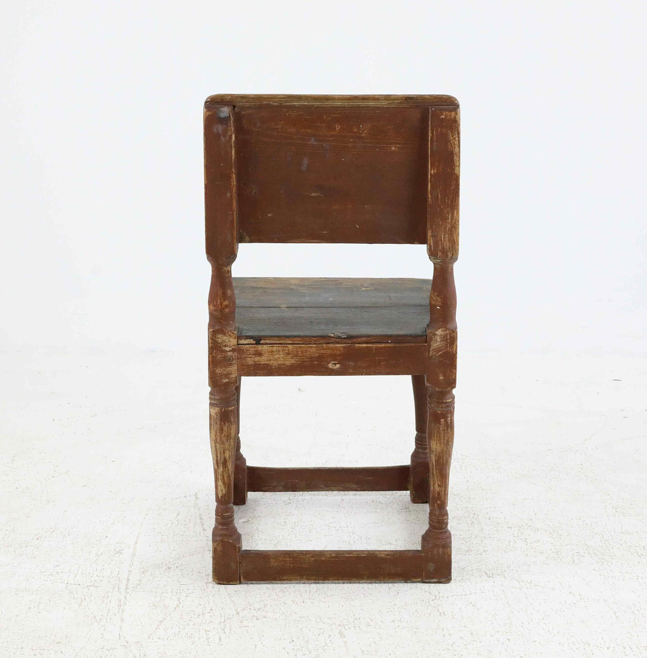 Painted red with black seat, wooden plug. Height 76 cm Seat height 42 cm Width 38 cm.