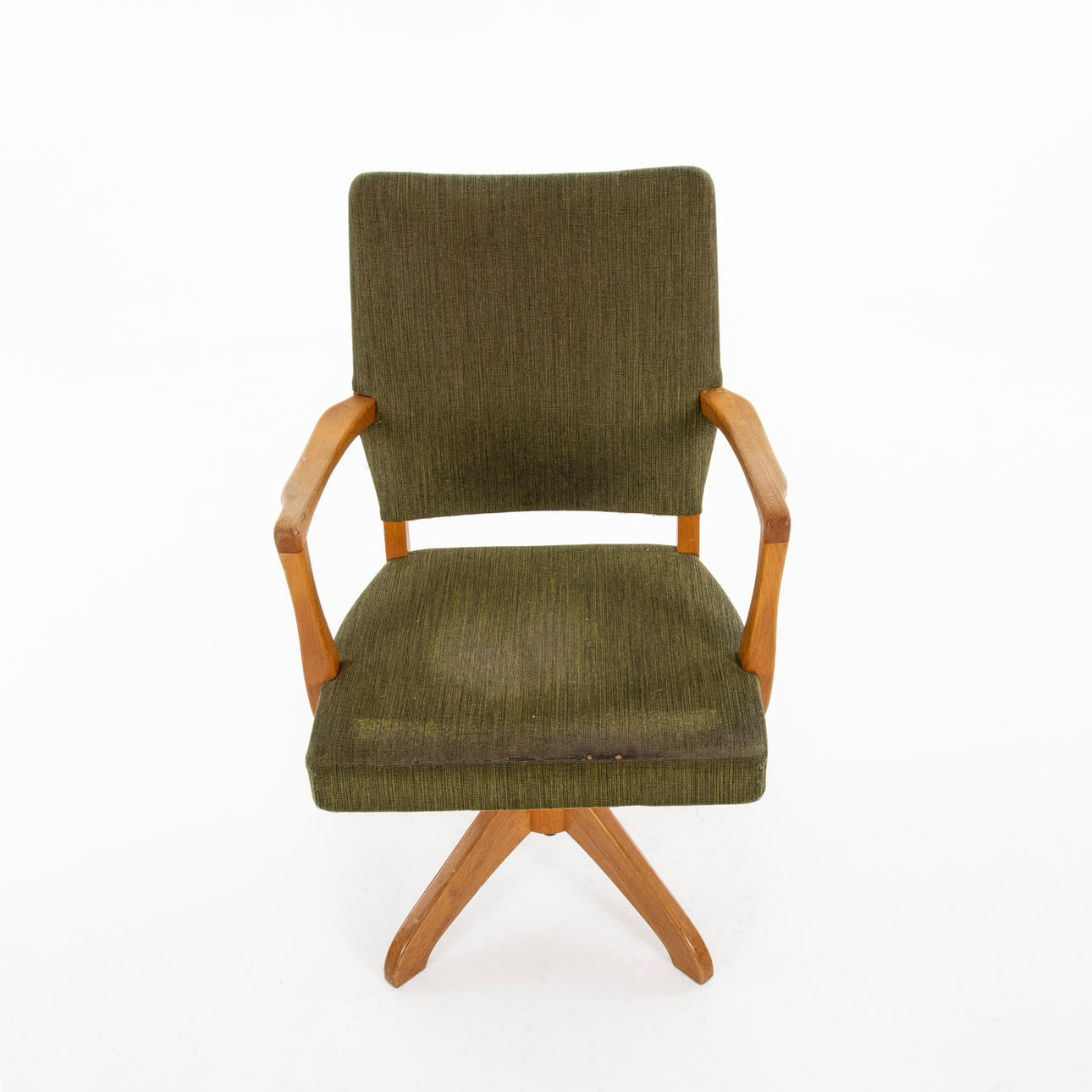 Desk chair, fully upholstered seat and back, tilt function. Wood species beech. Sweden circa 1940.