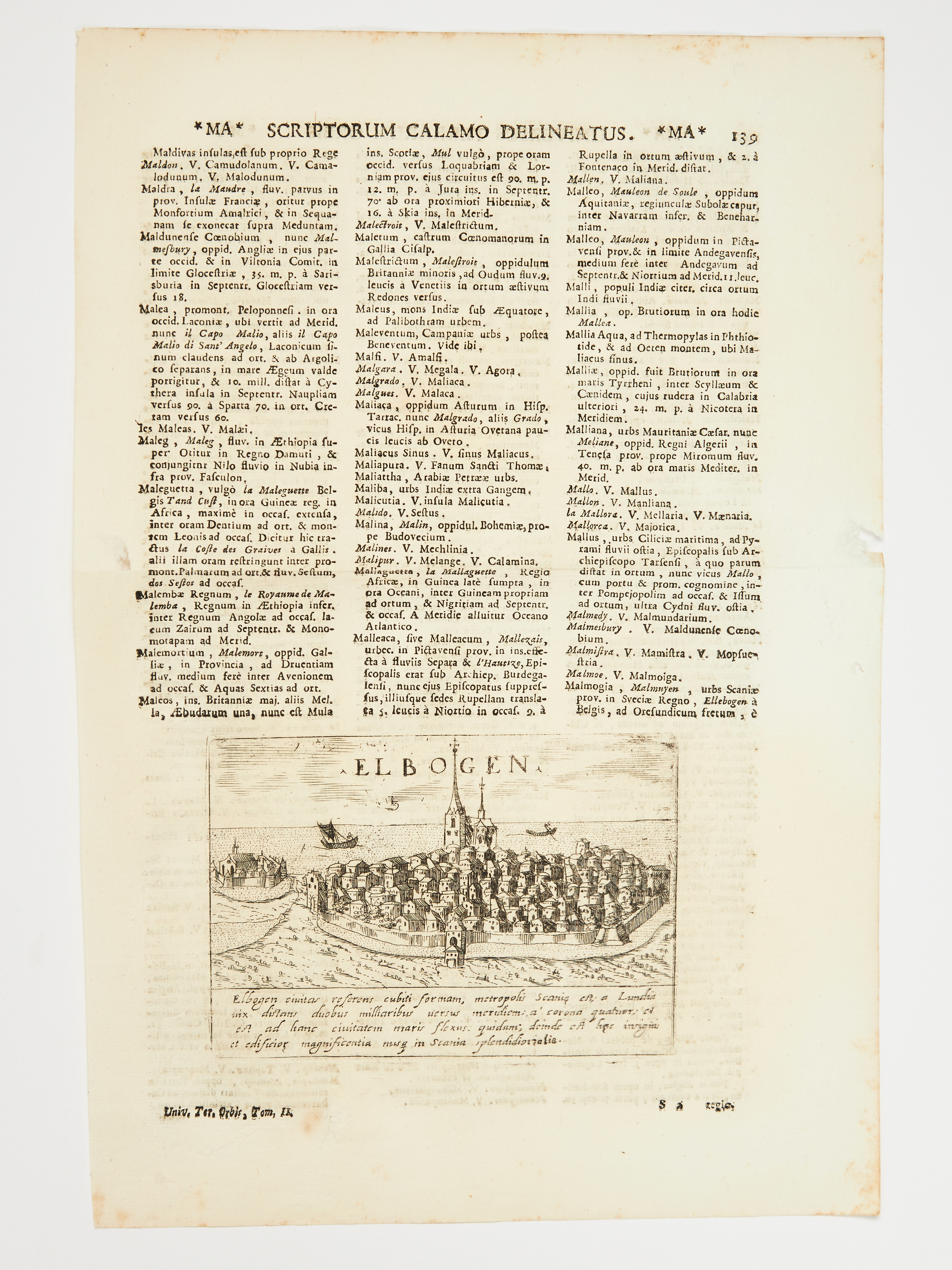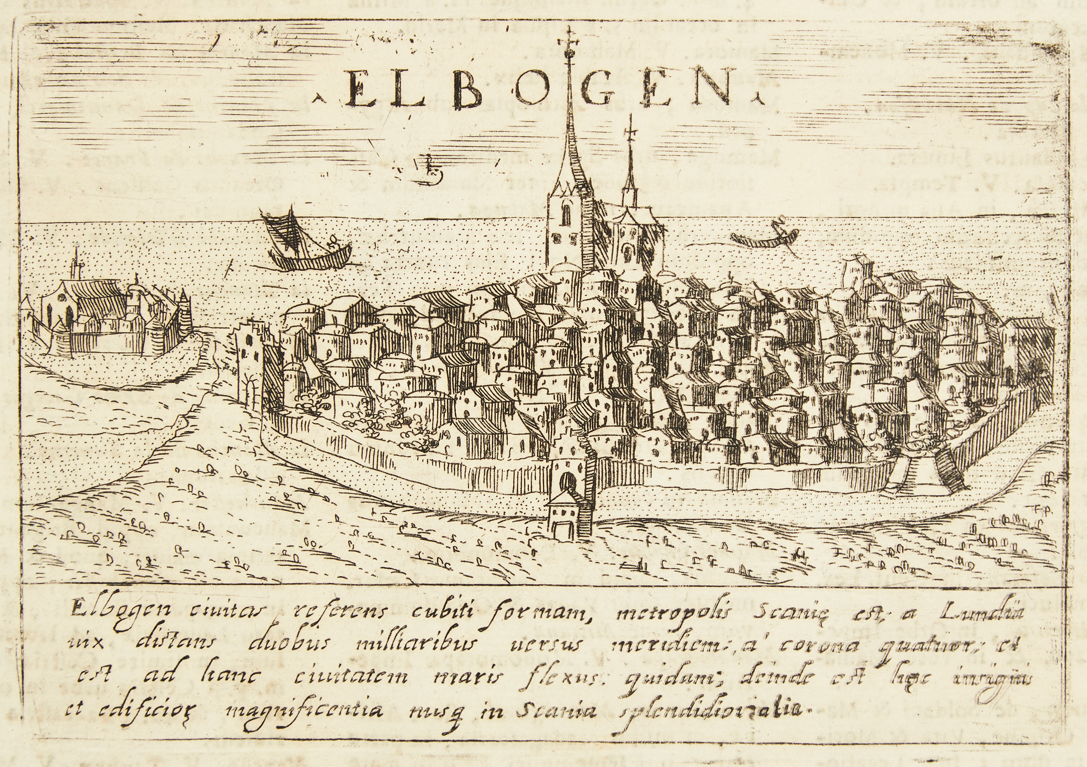 3659121. MALMÖ - ELBOGEN, engraved view on paper, 1713.