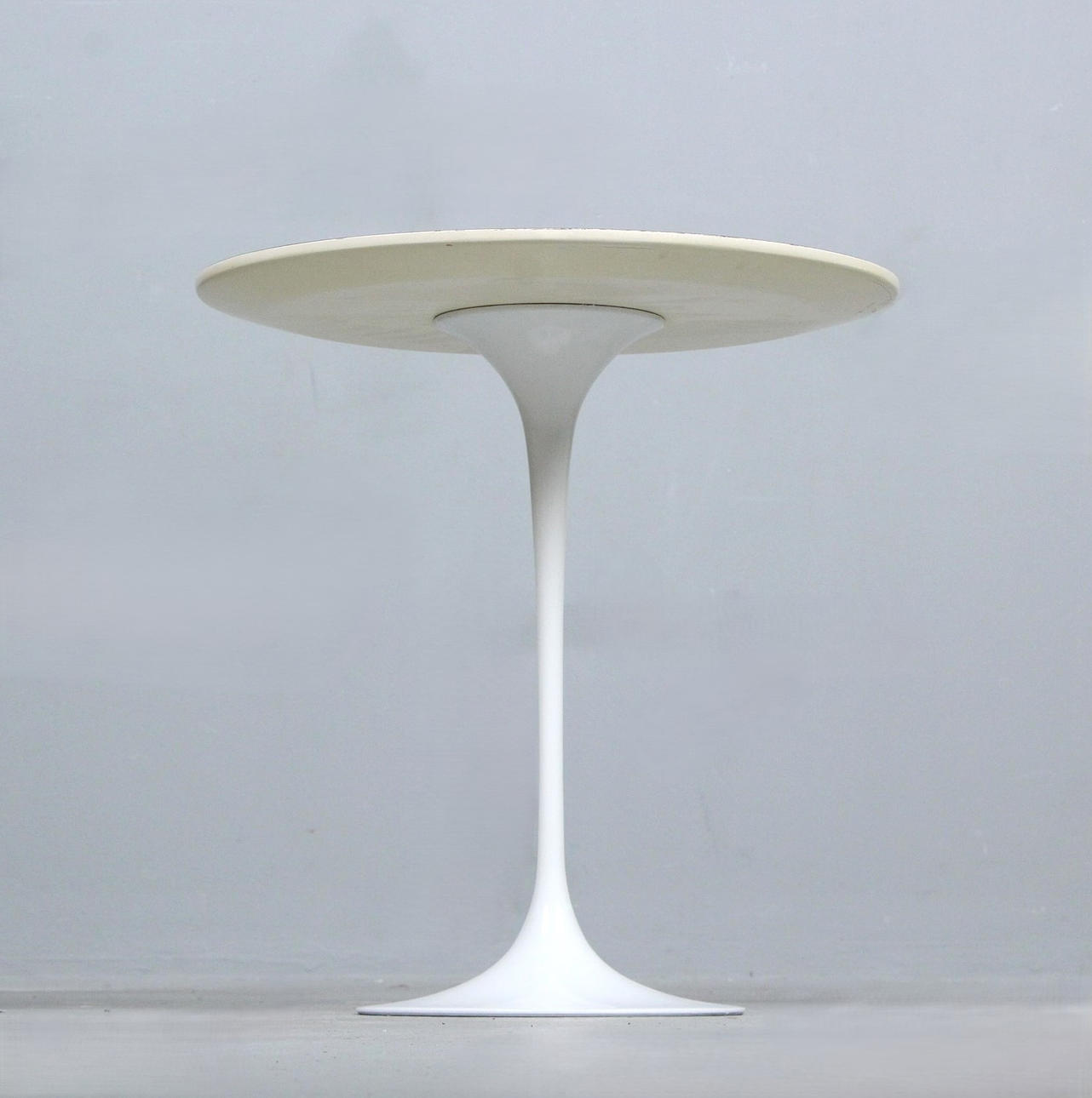 Eero Saarinen (1910—1961) for Knoll International, coffee table/side table 'Tulip', cast aluminum base, white laminated round table top, inscribed below,