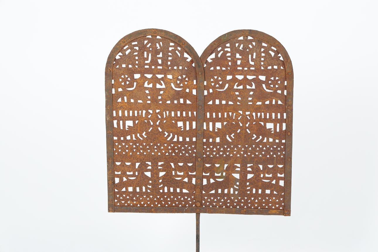 A TIBETAN PIERCED METAL SCREEN.