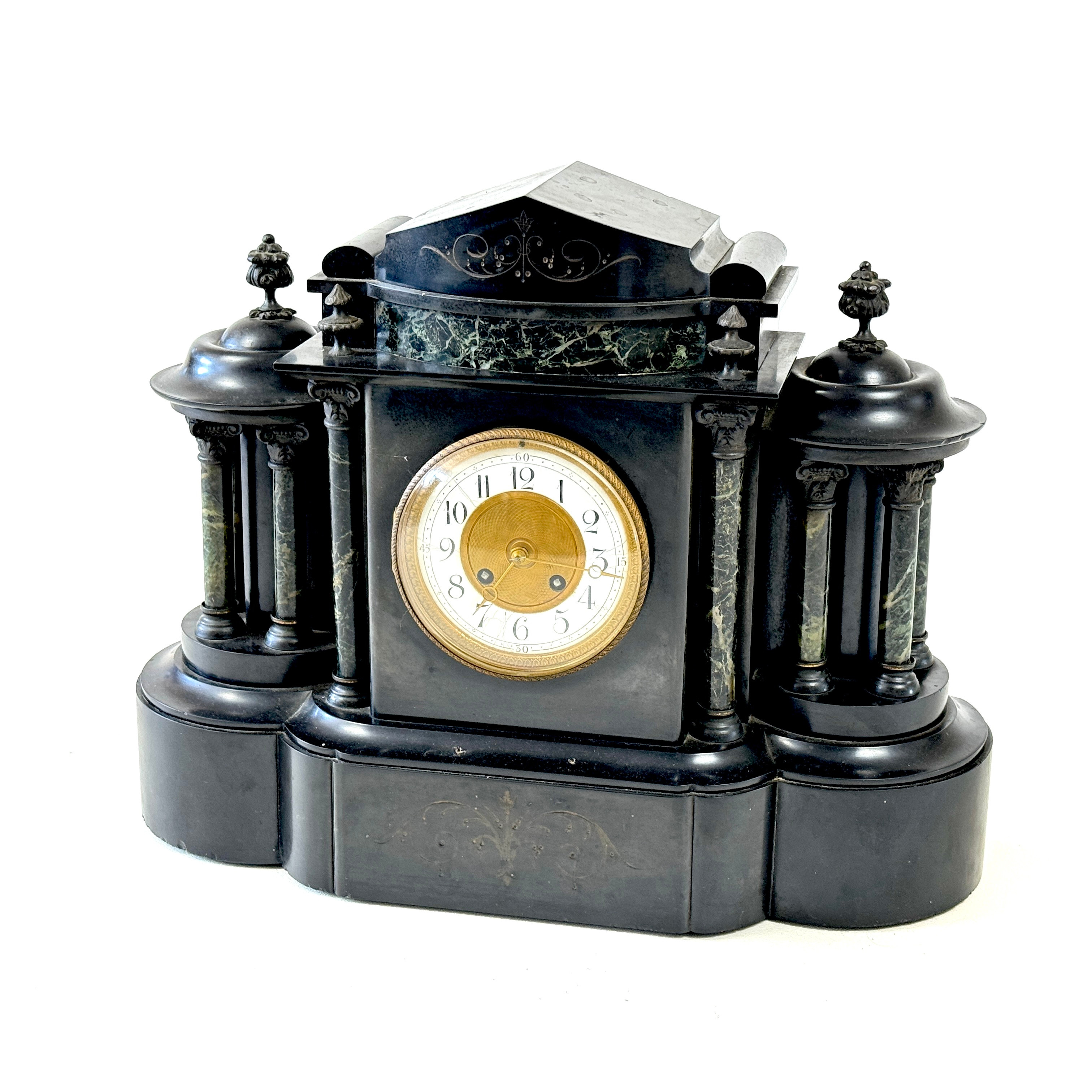 3661338. 19THC SLATE AND MARBLE MANTLE CLOCK.