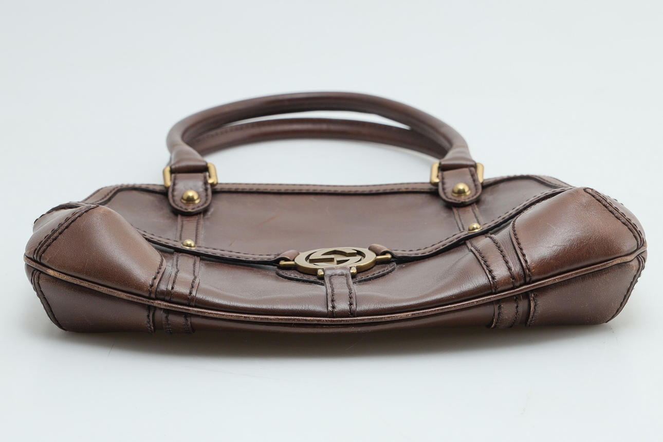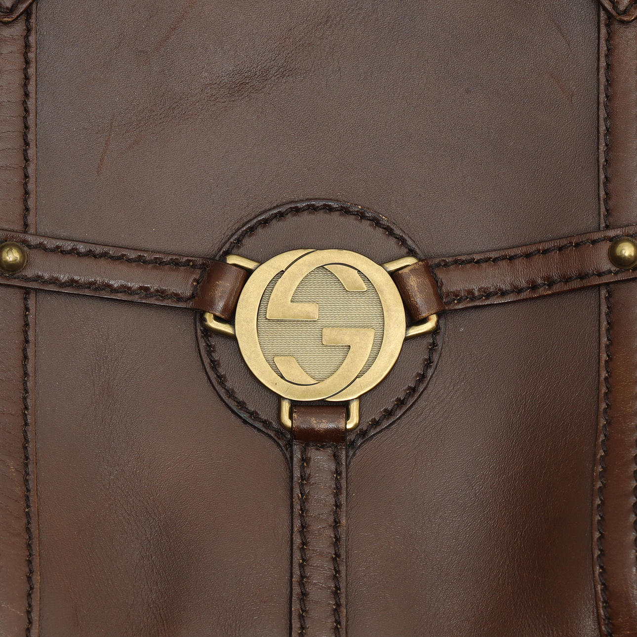 in brown leather with details in matte yellow metal. Tagged GUCCI, made in italy, 114882 001998.