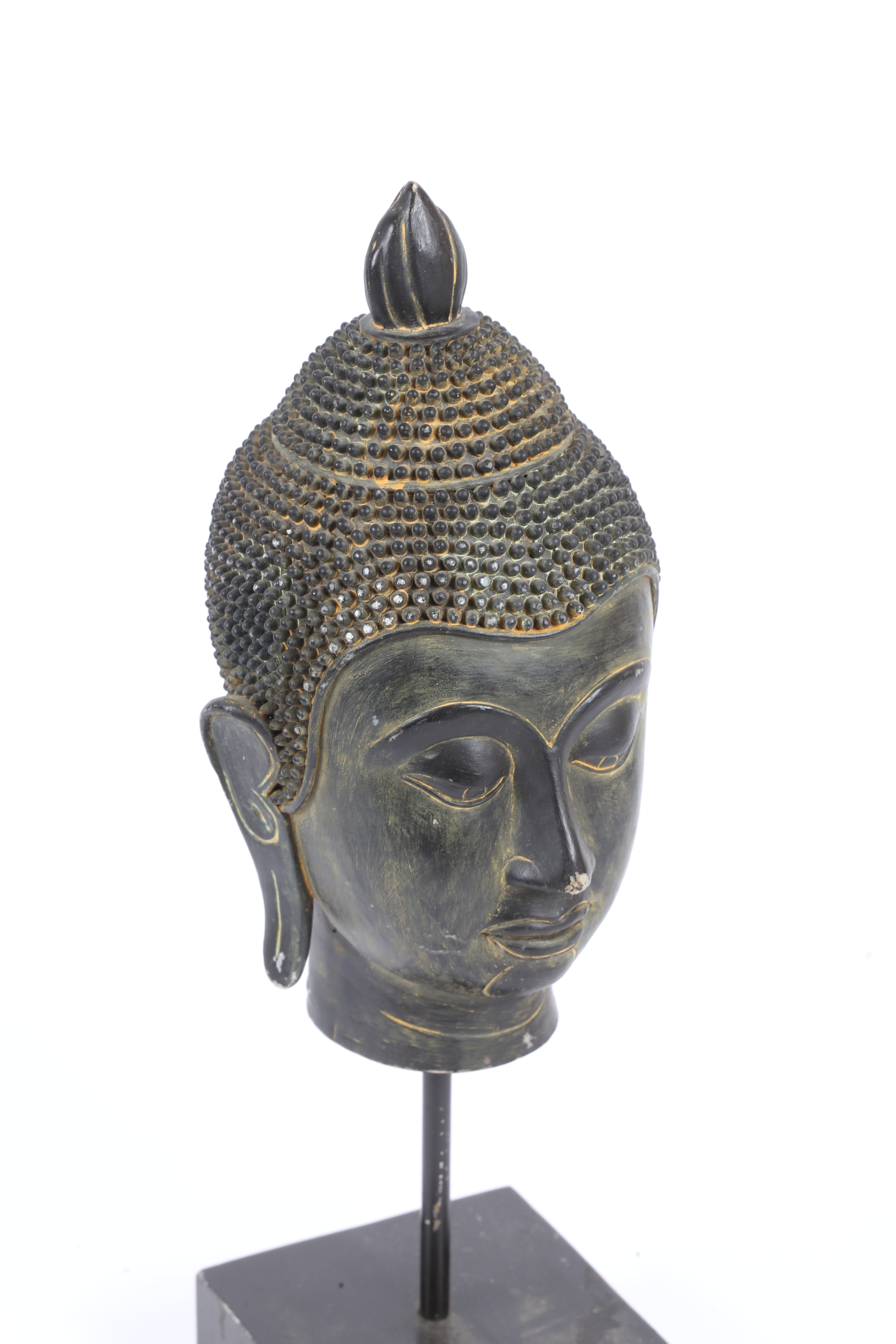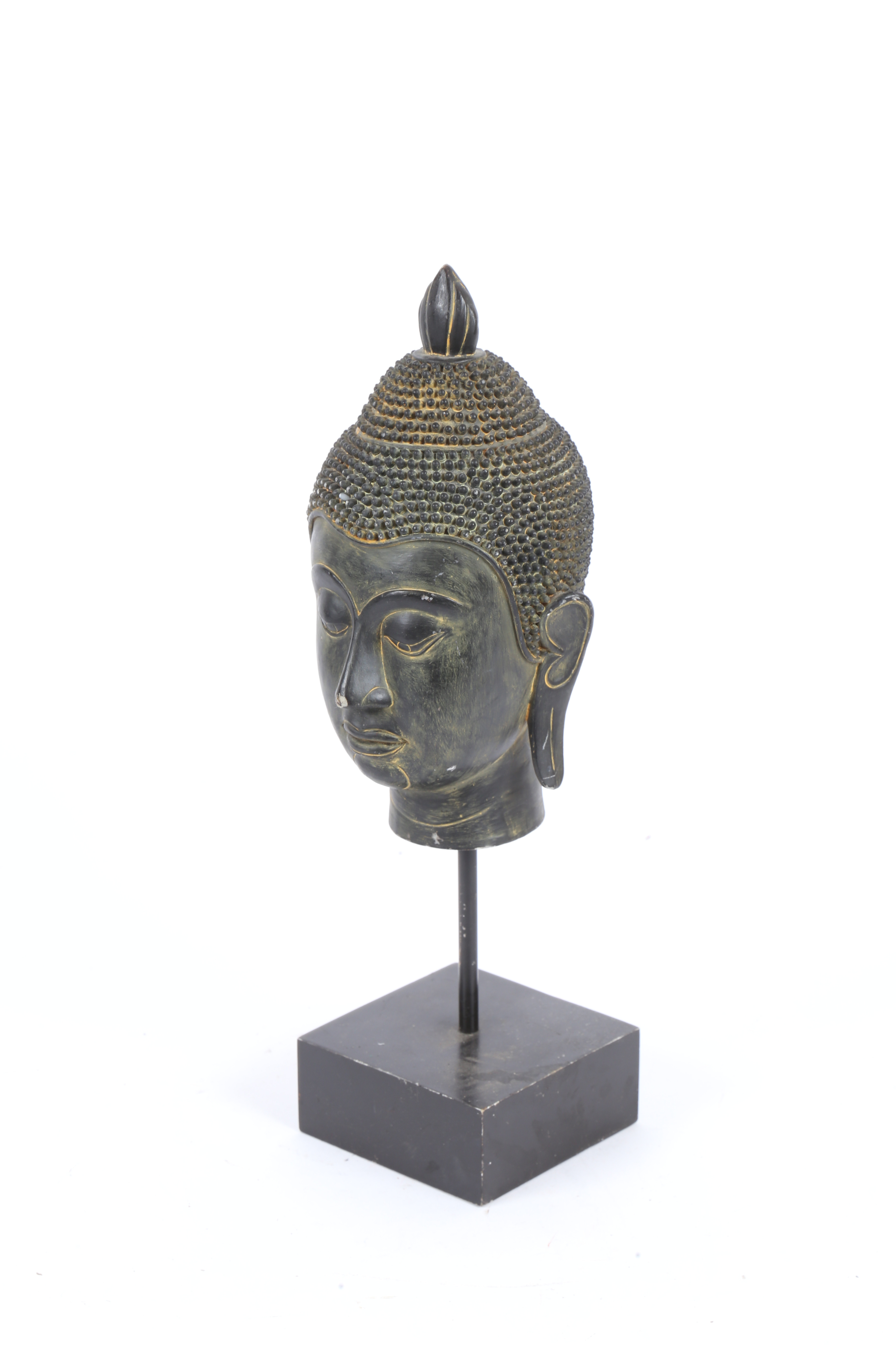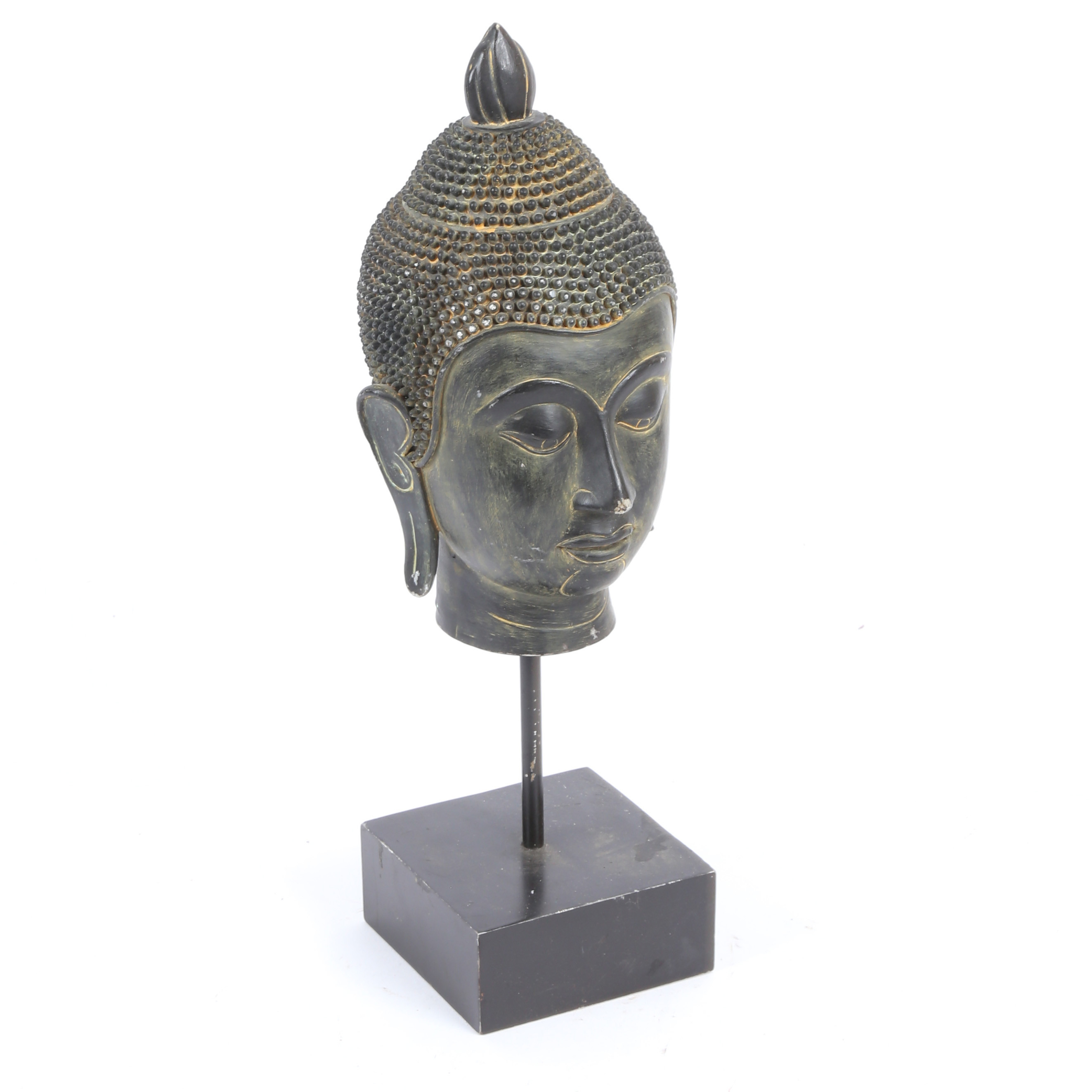 3661827. A RESIN BUDDHA HEAD ON STAND.