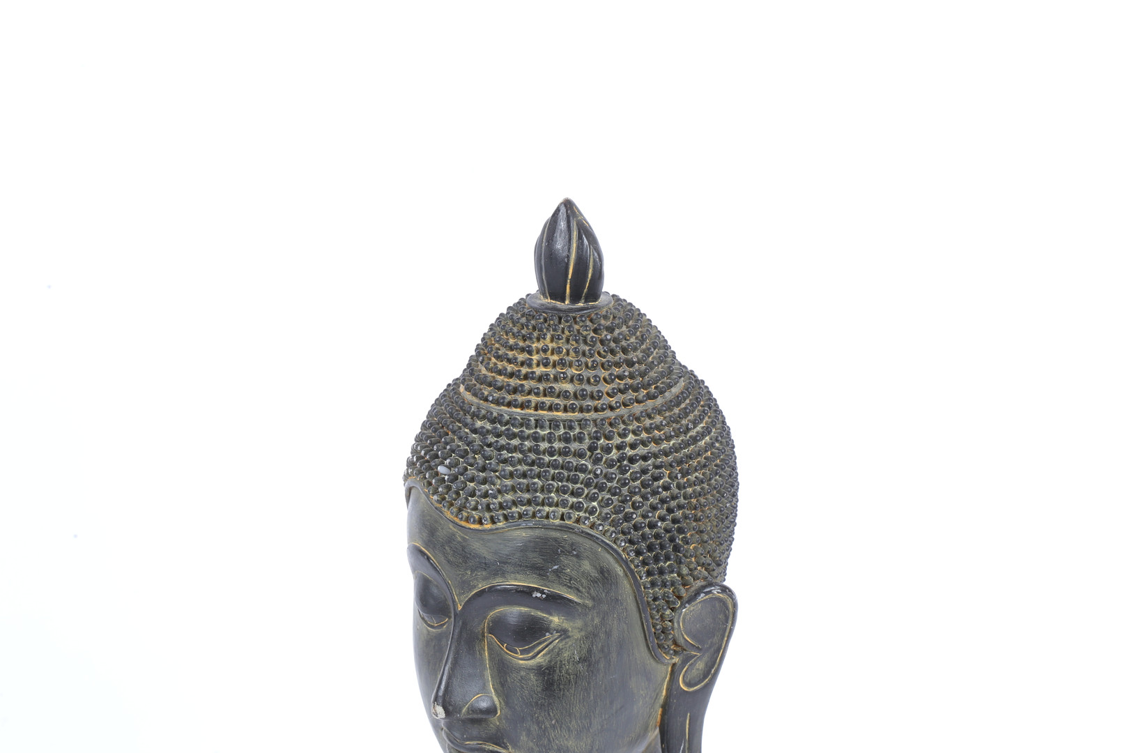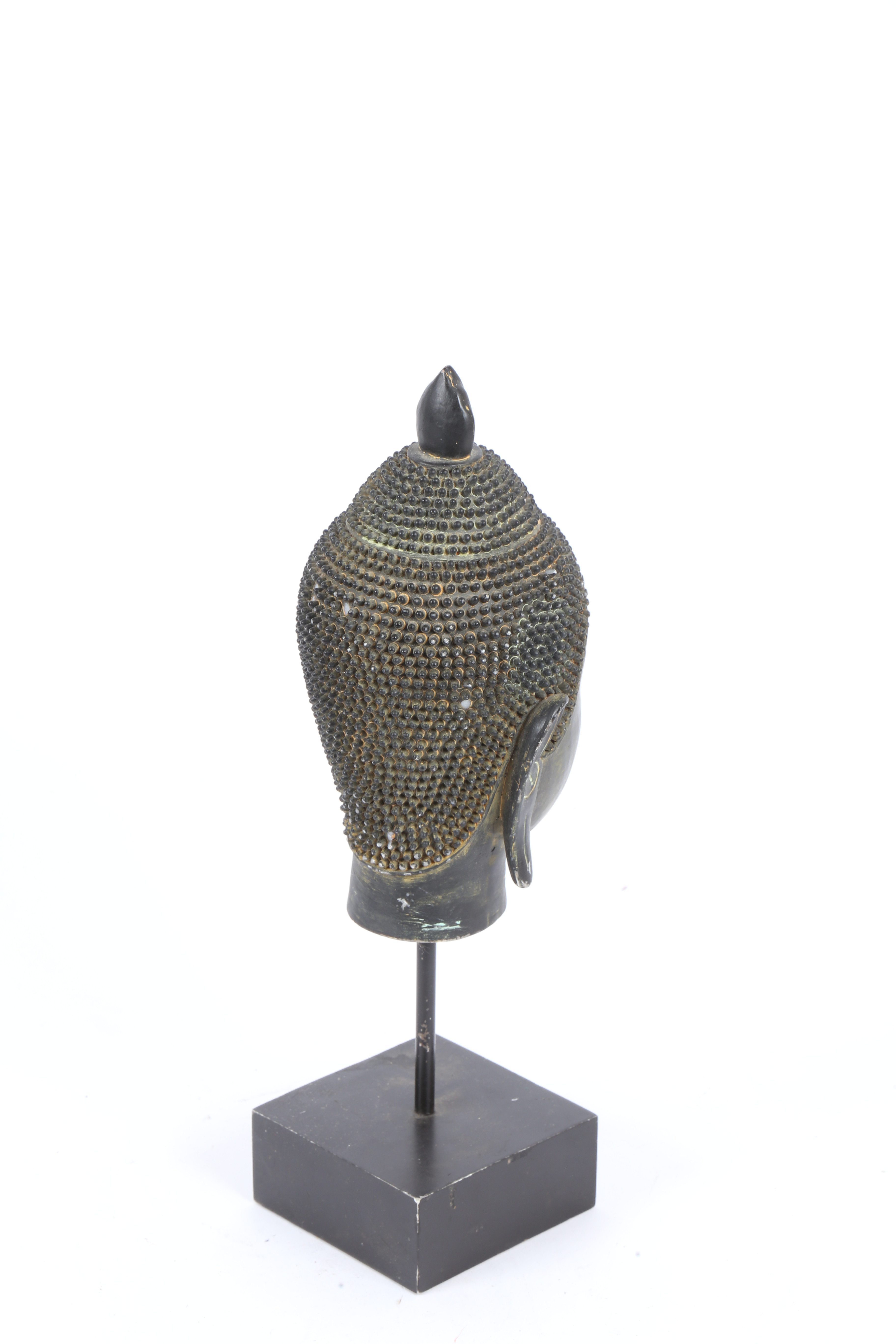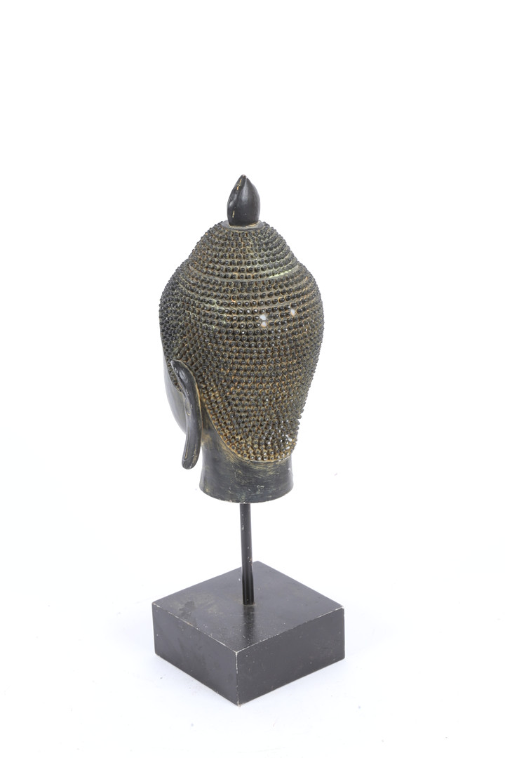 3661827. A RESIN BUDDHA HEAD ON STAND.