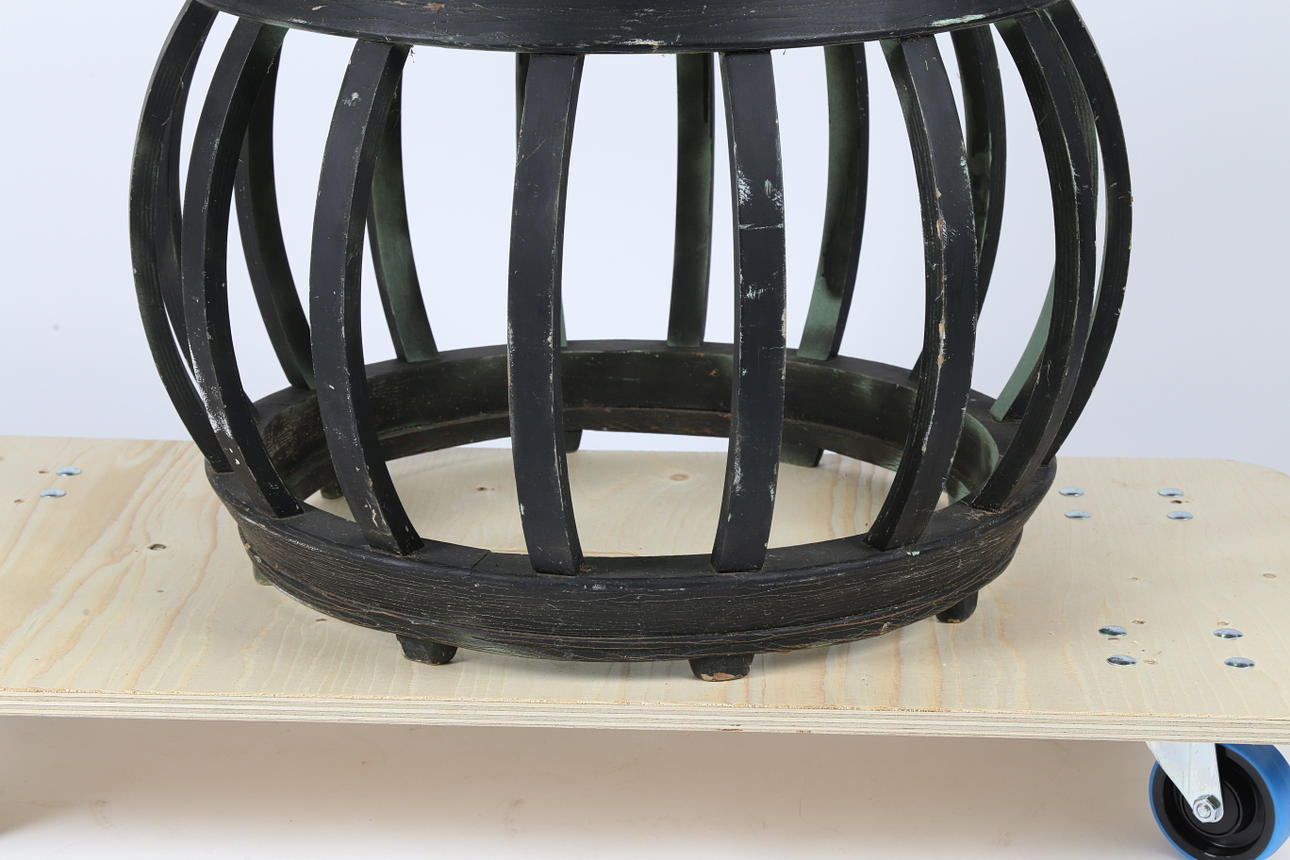 Frame spray painted in black with a green interior, 51cm height, approx. 70cm diameter.