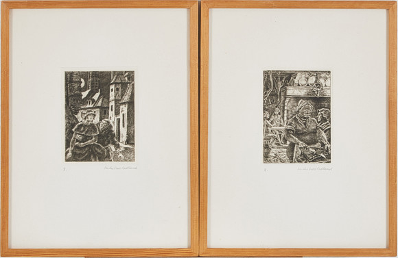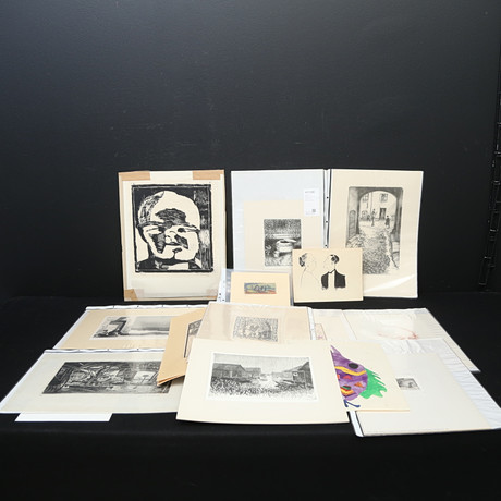 Axel fridell image 10 x 7 cm, Stig Åsberg numbered 229/310 25 x 20 cm, Folke Gullby 196/300, 13 x 23 cm.