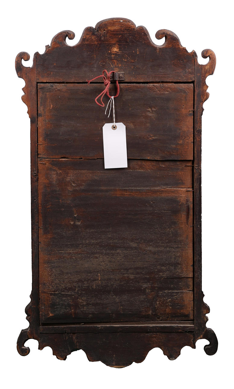 The rectangular mirror plate within a slip and scroll frame, 53cm wide, 95cm high.