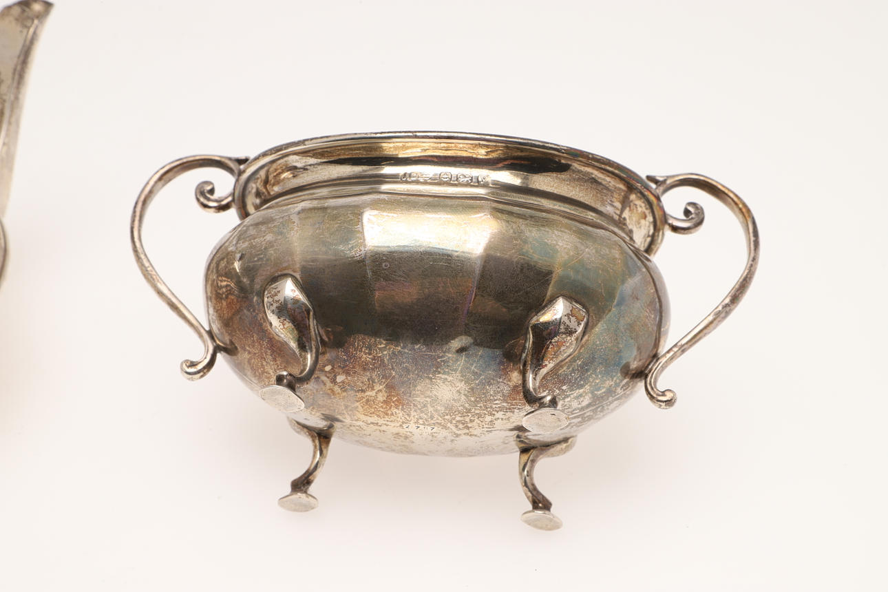 3668693. A SILVER TEA POT & A SILVER SUGAR BASIN.