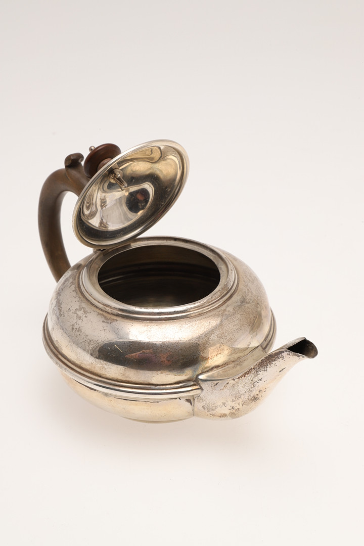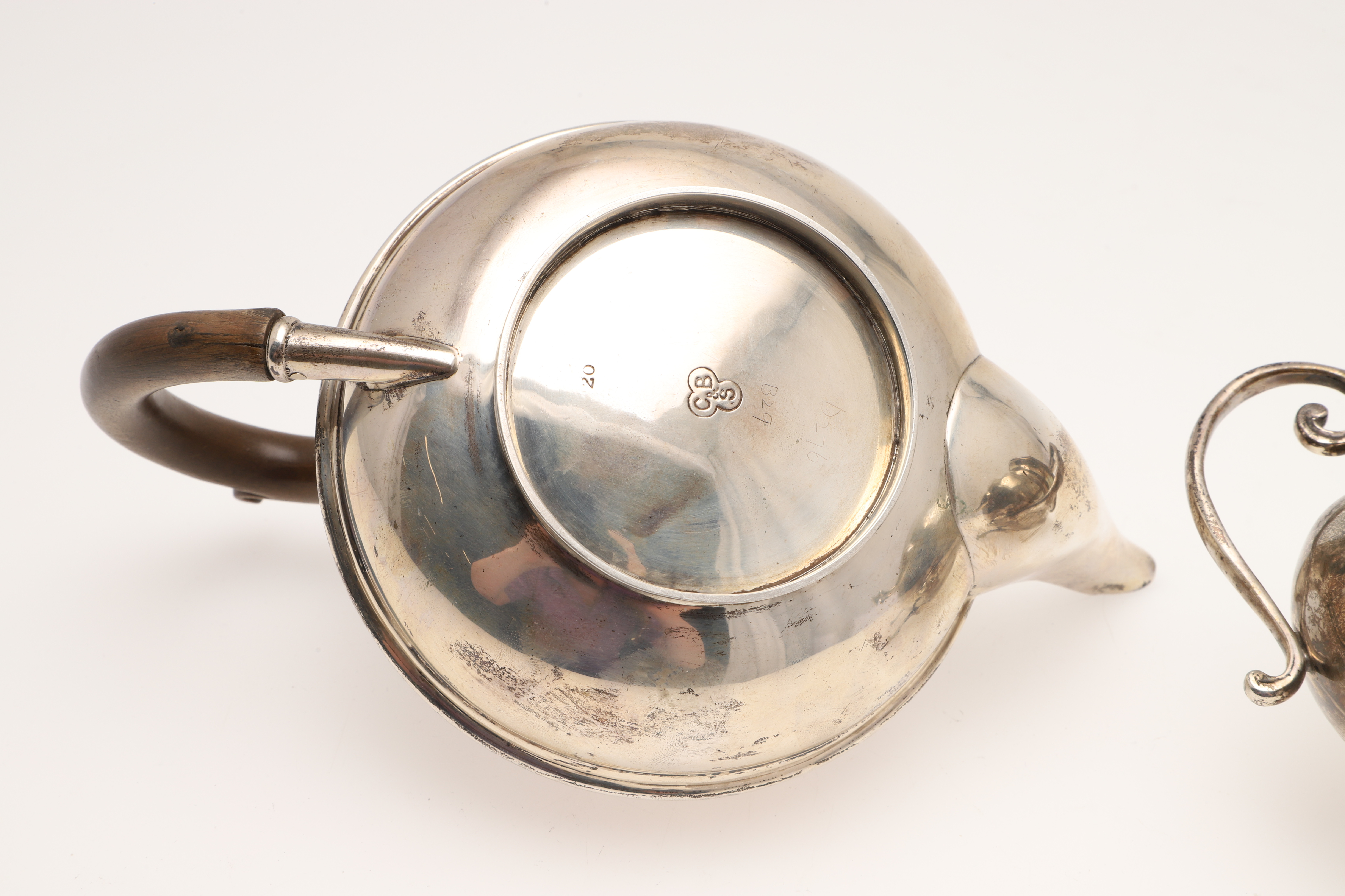 3668693. A SILVER TEA POT & A SILVER SUGAR BASIN.