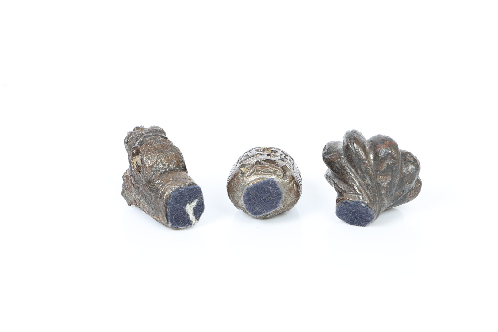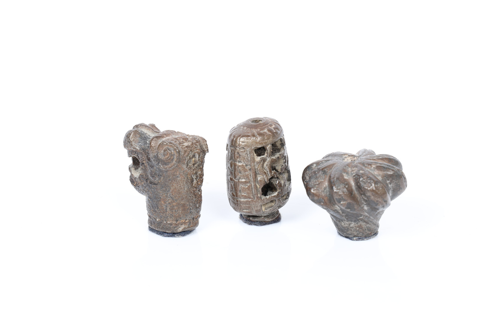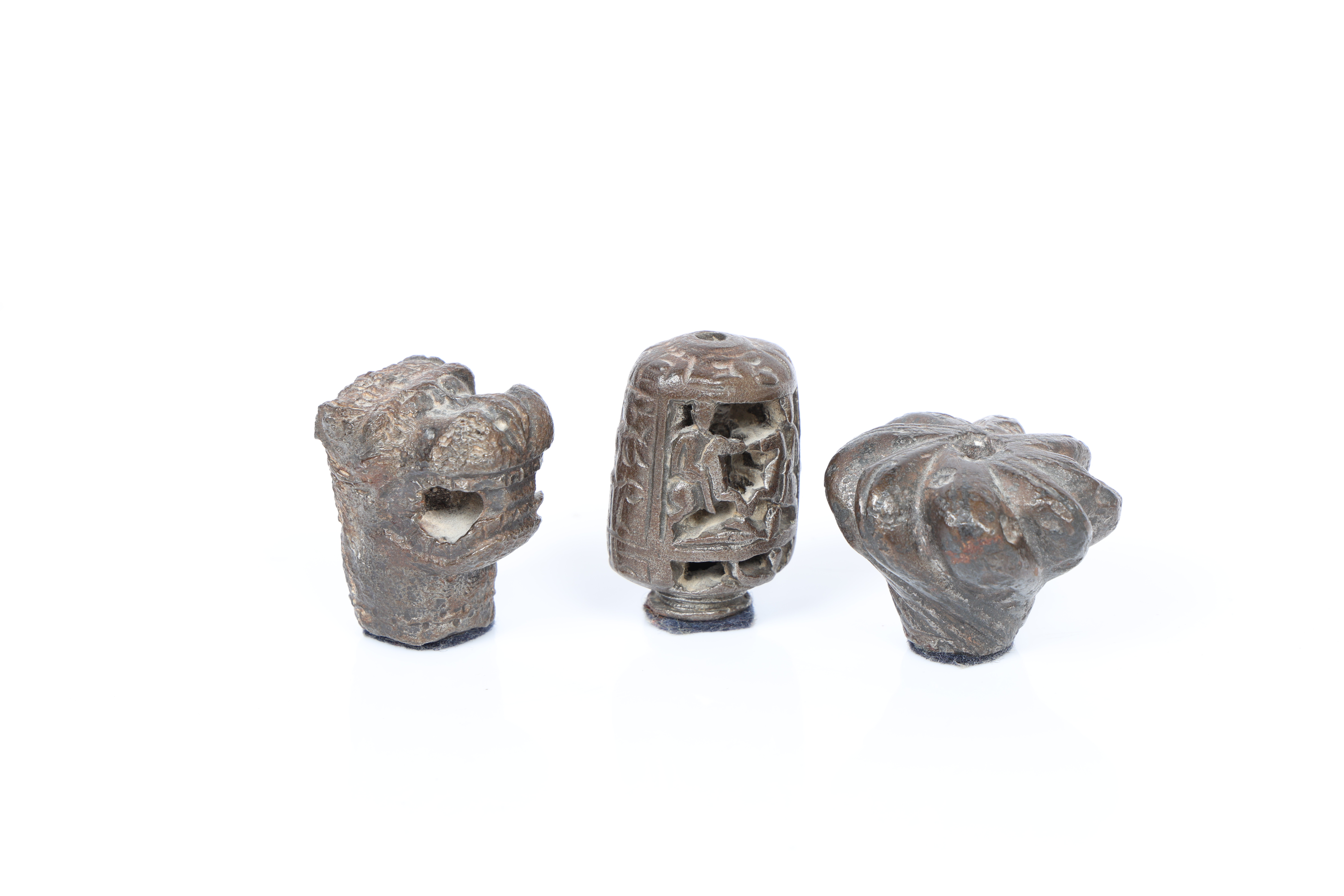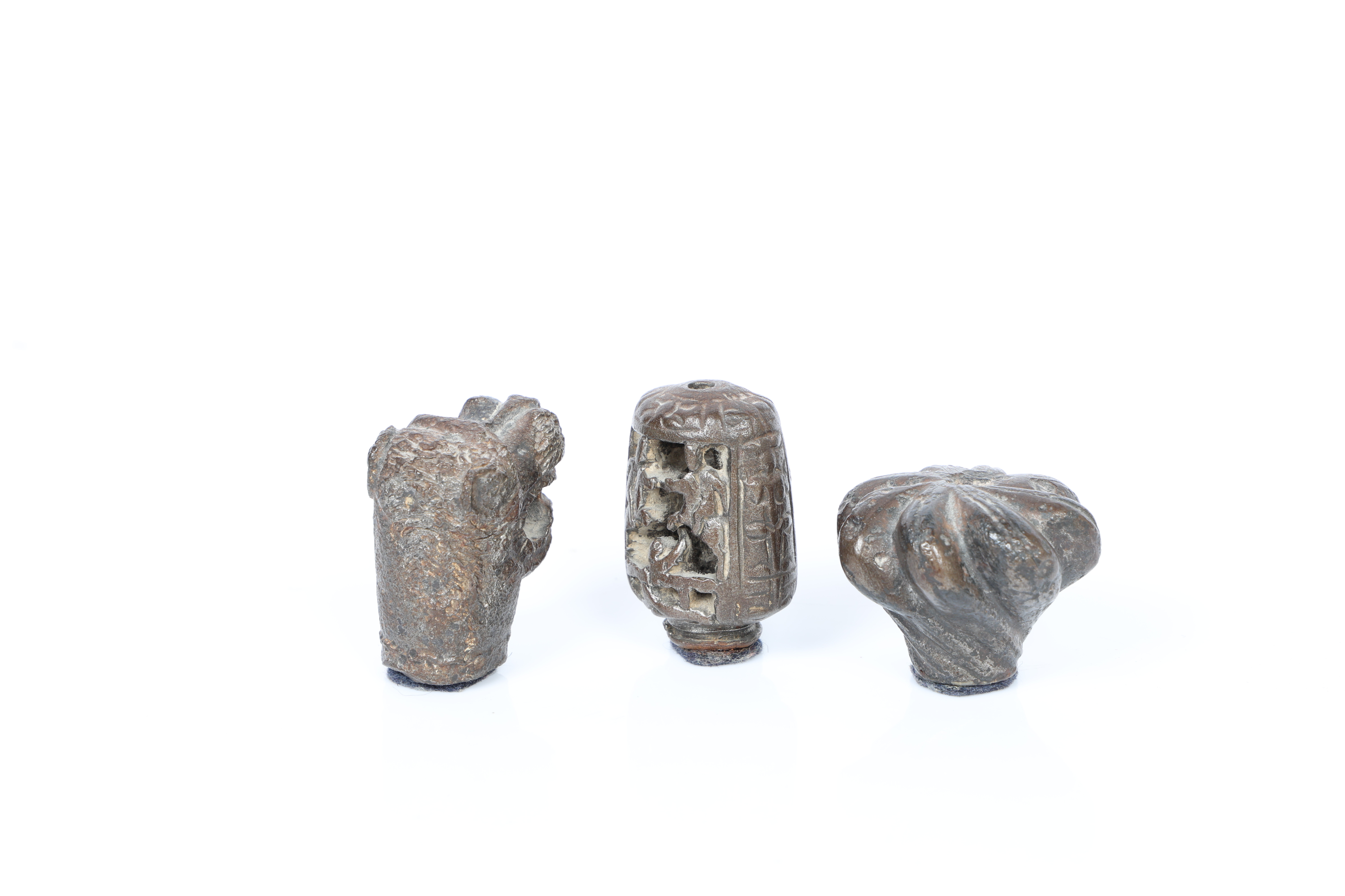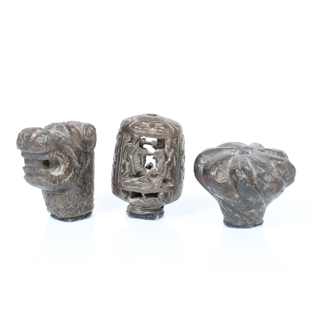 2. 3669342. THREE MEDIEVAL BRONZE MACE HEADS (3).
