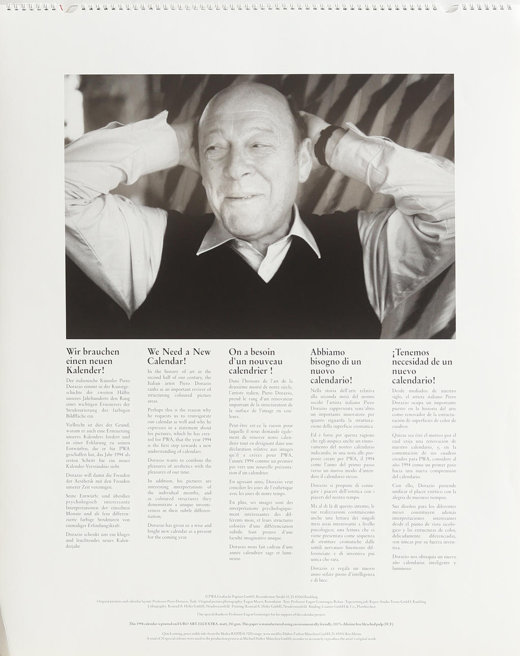 Almanac for the year 1994 illustrated by the Italian artist Piero Dorazio Dimensions: 59 x 74,5 cm