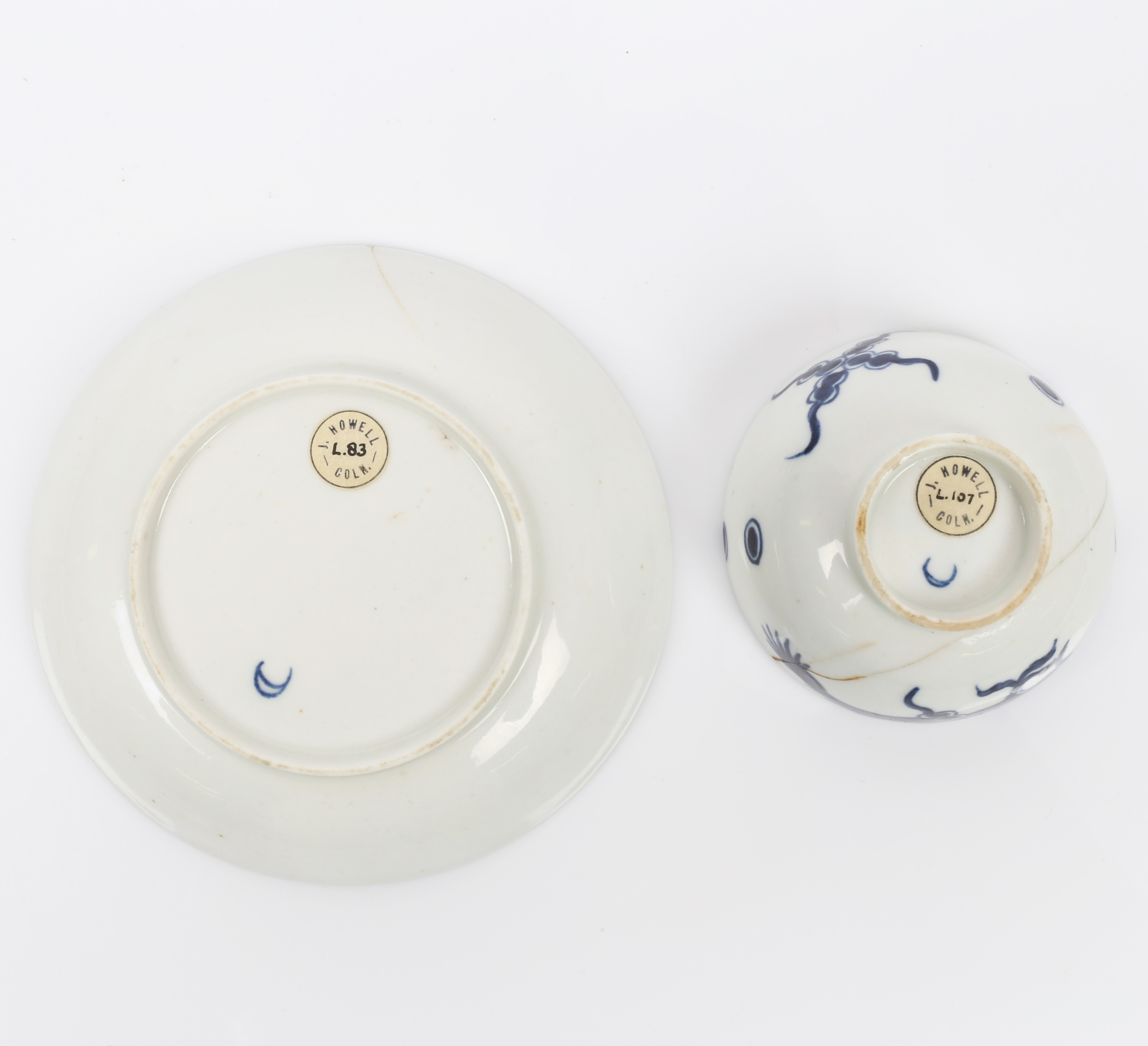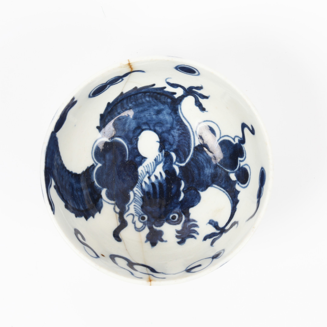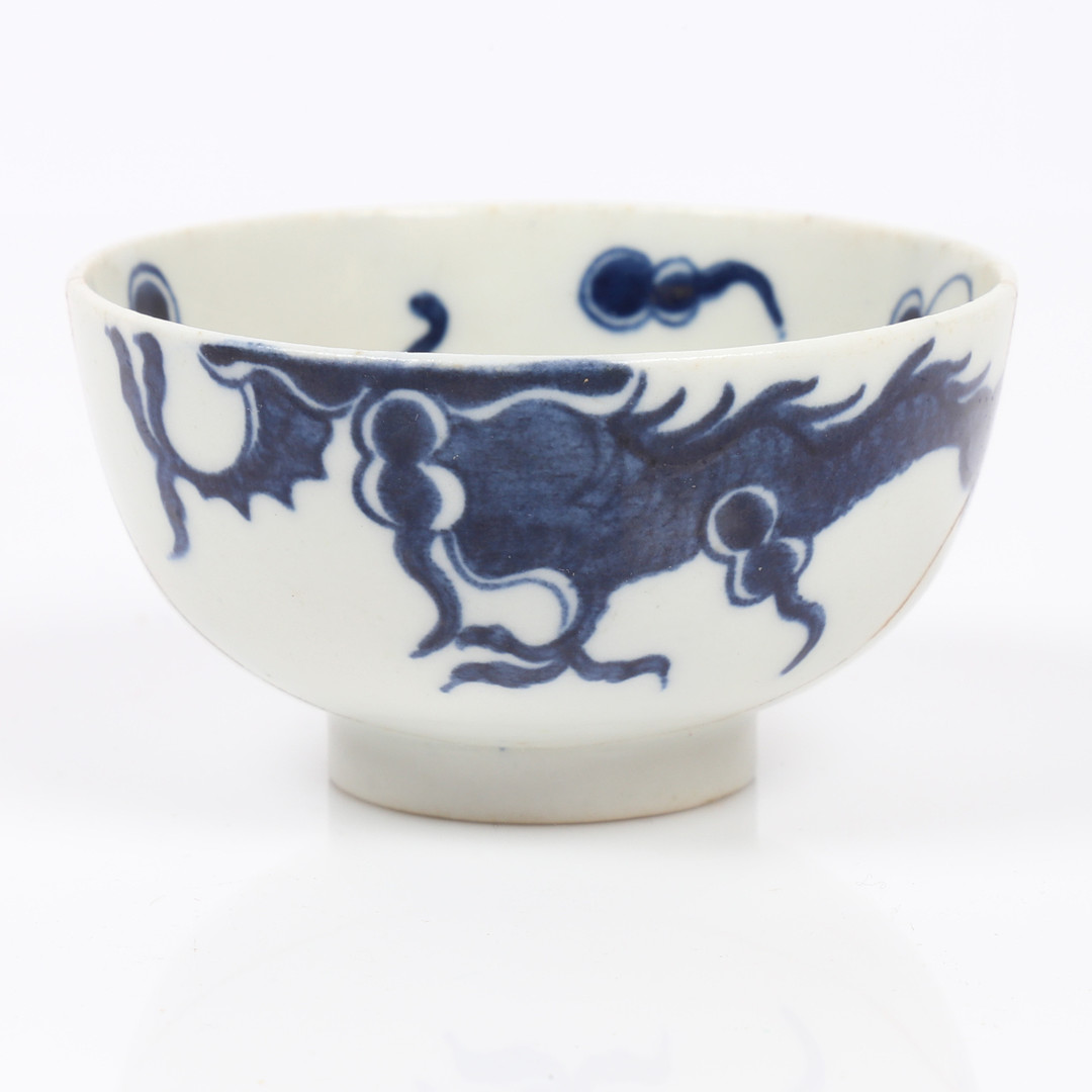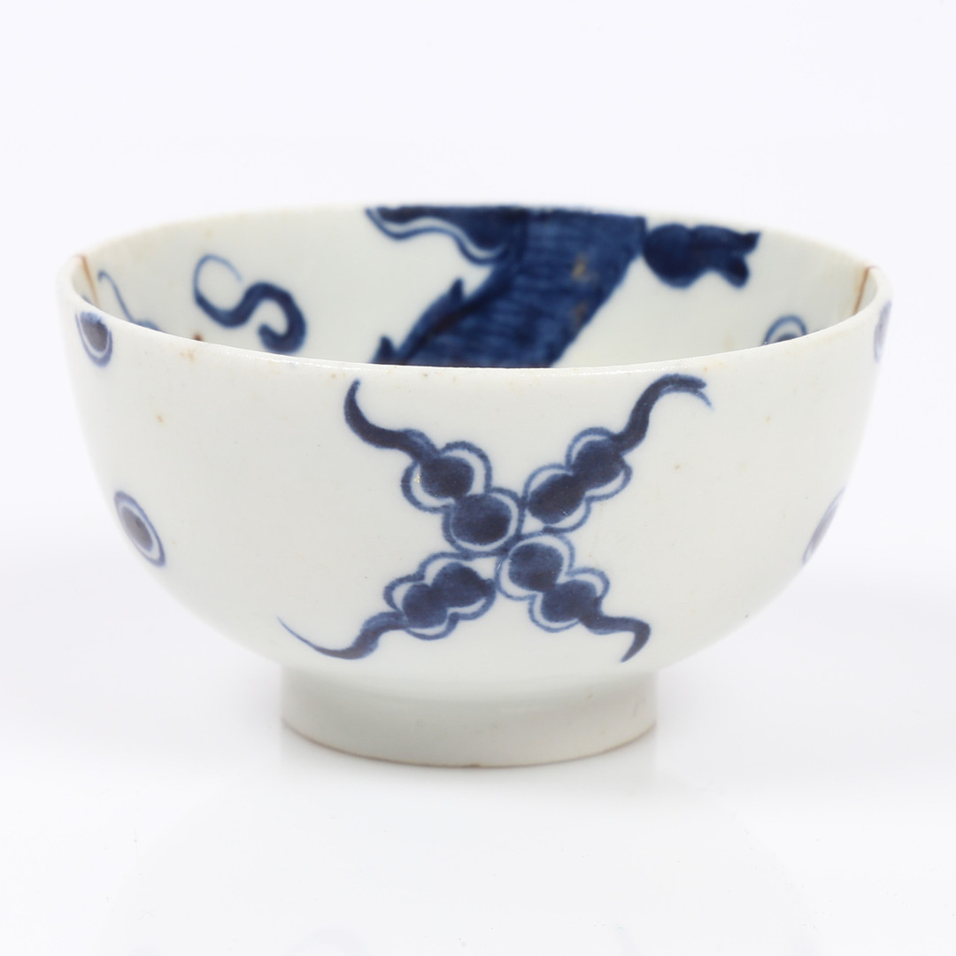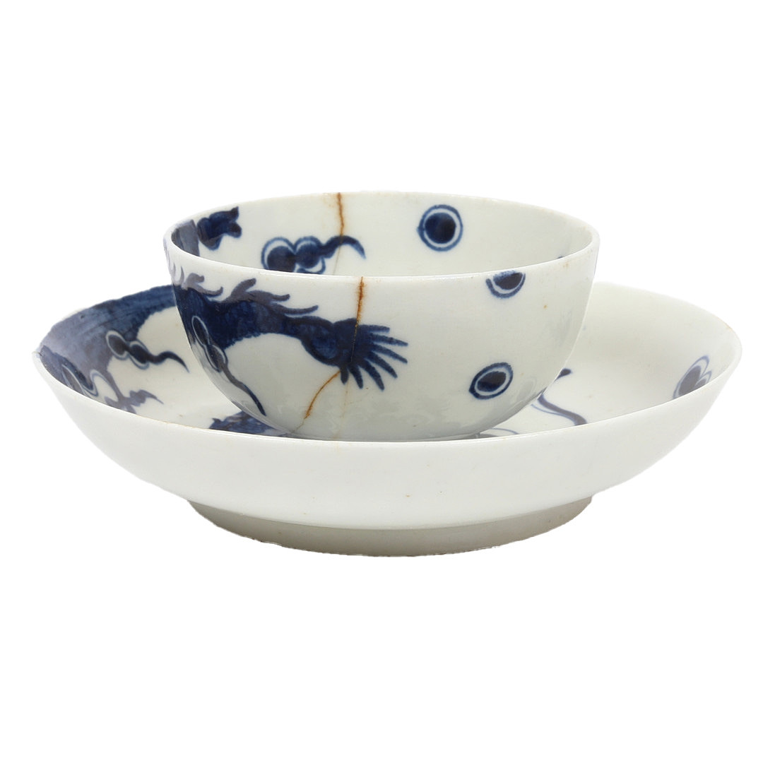 3672841. A LOWESTOFT DRAGON PATTERN TEA BOWL AND SAUCER.