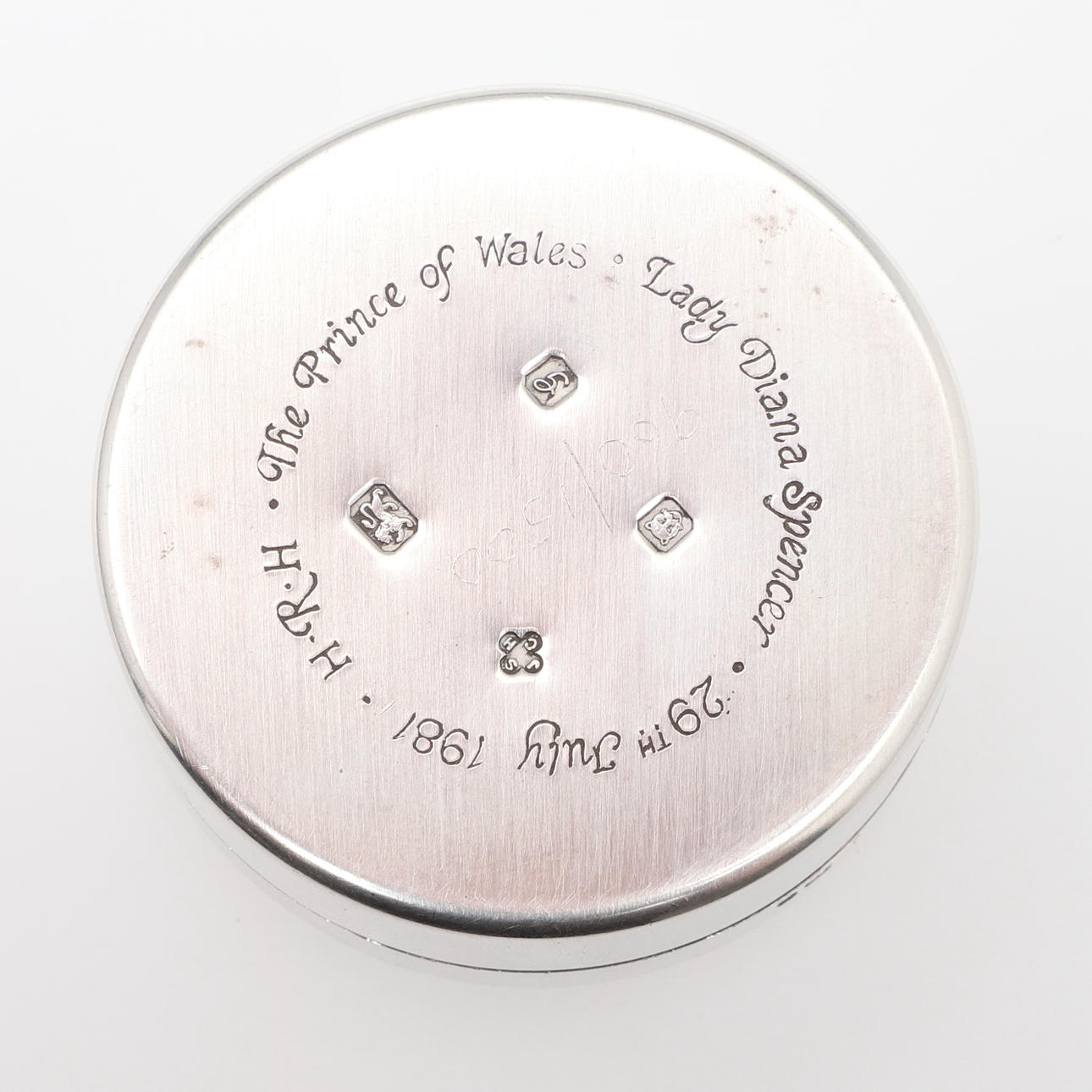 made to commemorate The Royal Wedding of The Prince of Wales and Lady Diana Spencer, by St James House Company, London 1981; 2" (5.2cm) diameter.