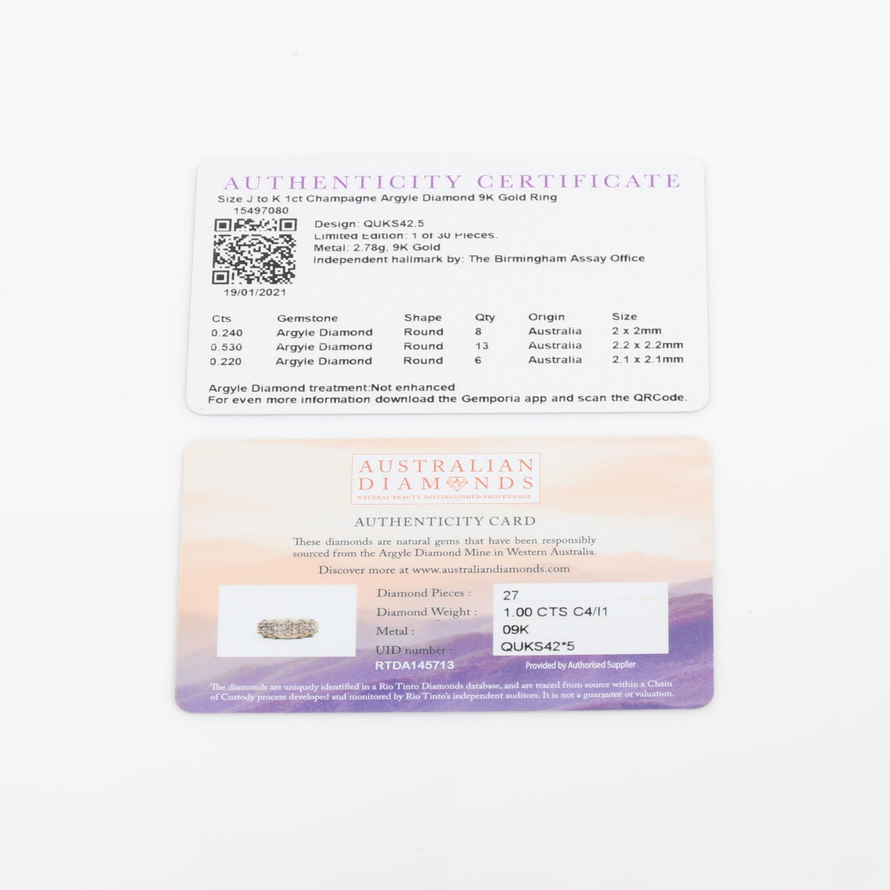 Complete with a Gemporia and Australian Diamonds. certificate of authenticity.