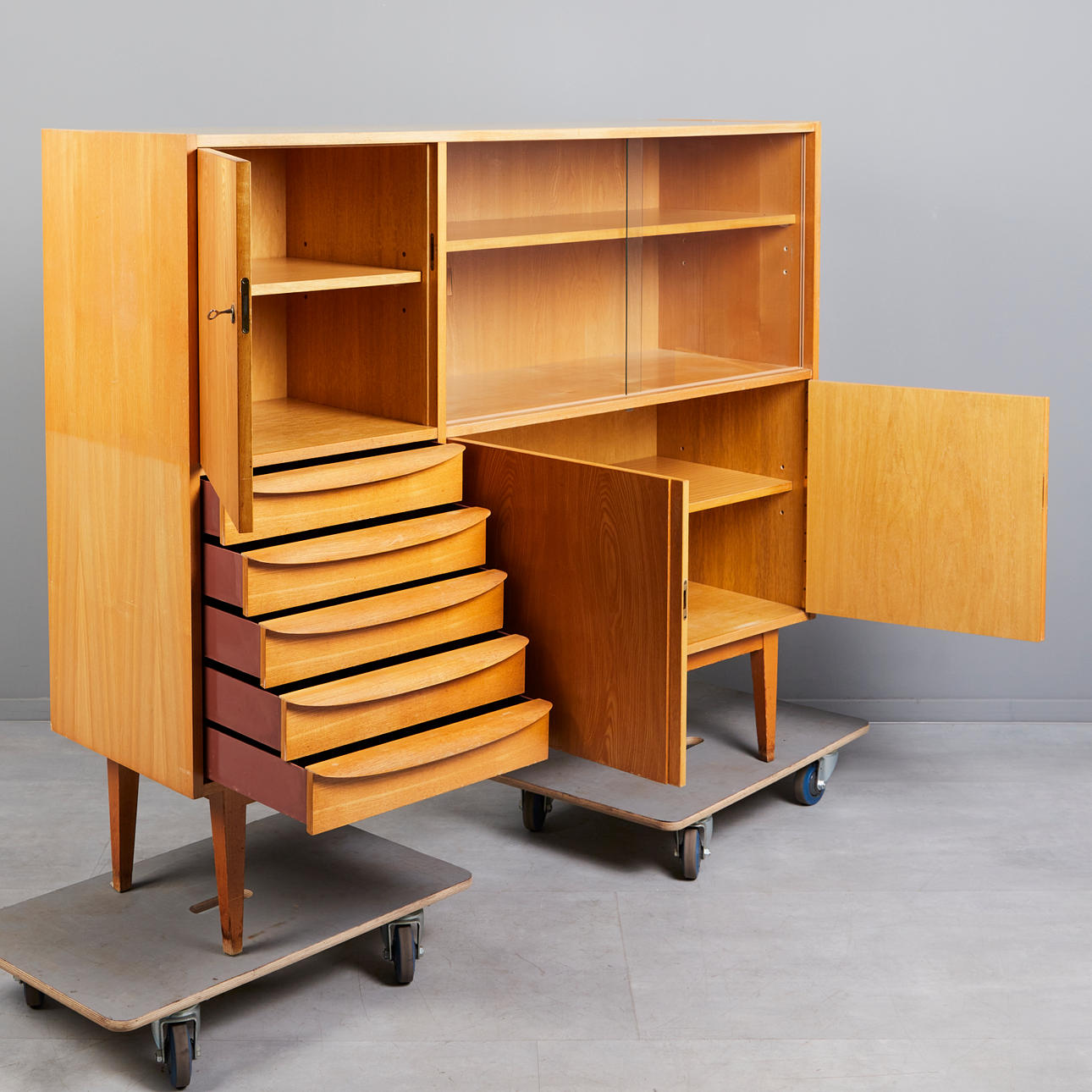 3676790. FRANZ EHRLICH. Showcase/bar cabinet, ash, 1960s, GDR.