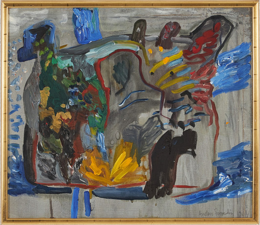 3677768. LASSE ÅBERG. “Flying Dog”, color lithograph from the folder “Fauna”, signed and numbered H.C. XXXIX/XL.