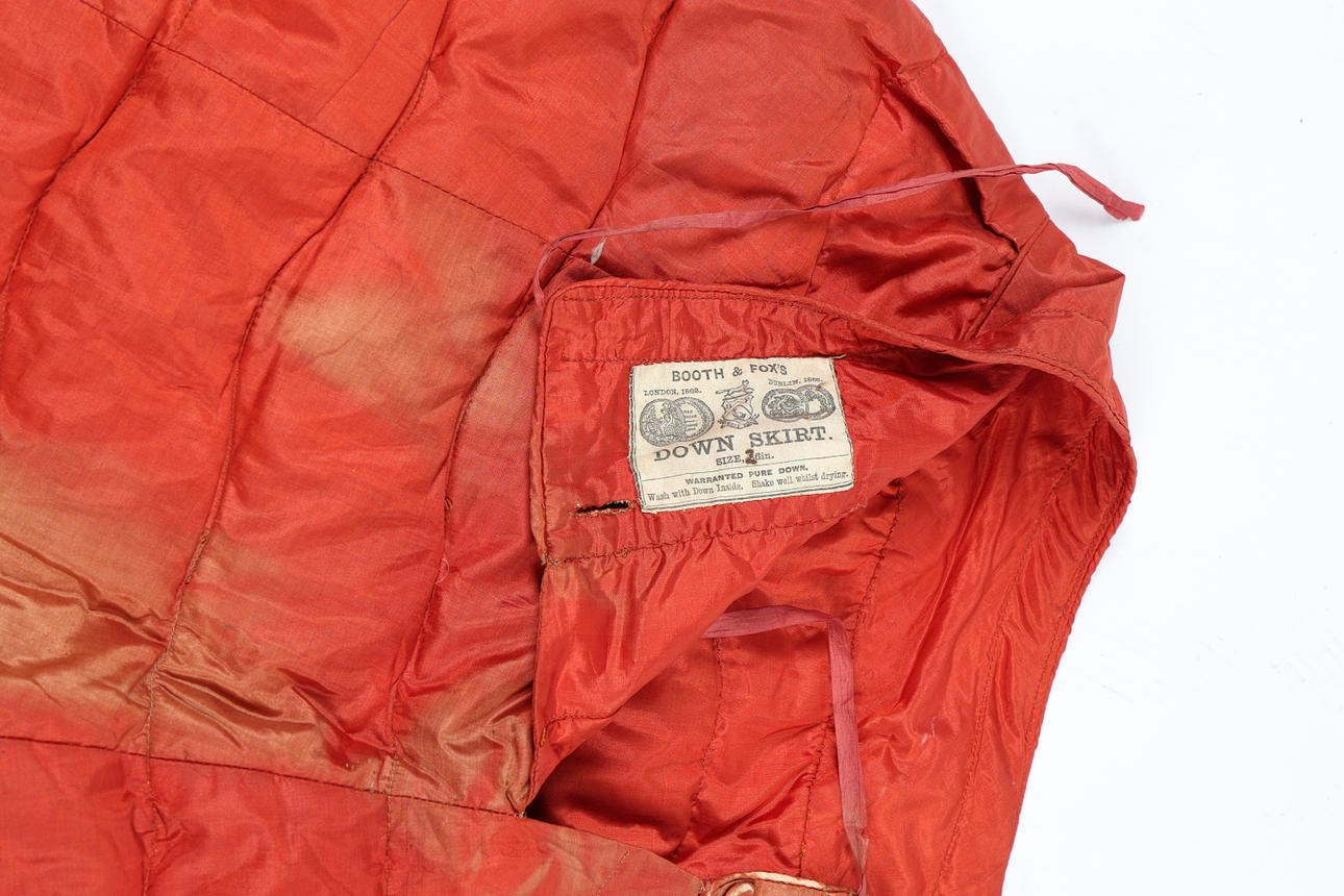 A BOOTH & FOX'S DOWN PETTICOAT UNDERSKIRT, 19TH CENTURY.