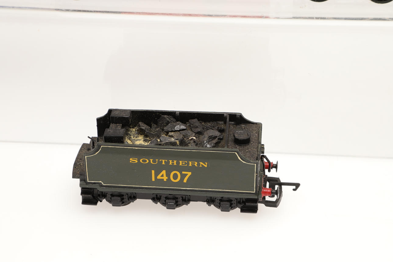 Including a Southern 3520 Adams Radial Tank, a Southern 2096 locomotive, a Southern tender, and three kit built buses (in their boxes).