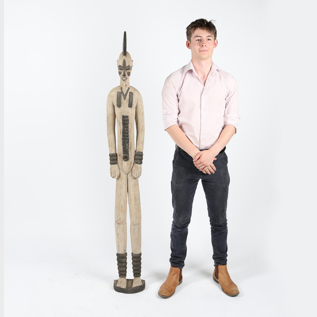 second third of the 20th century, carved as a slneder figure with black pigmented design, 170cm high