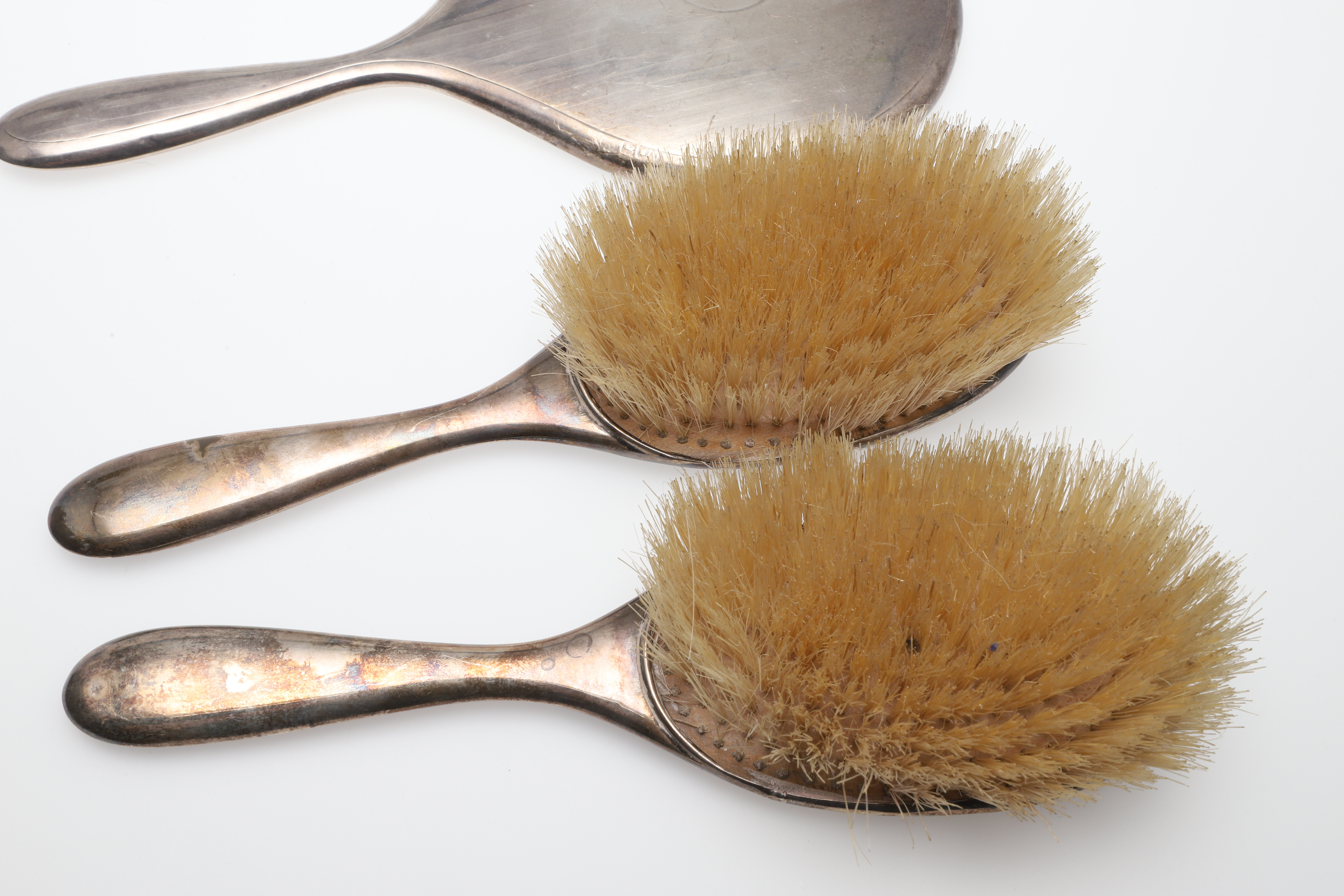 3693702. A GEORGE V FIVE-PIECE SILVER DRESSING TABLE SET.