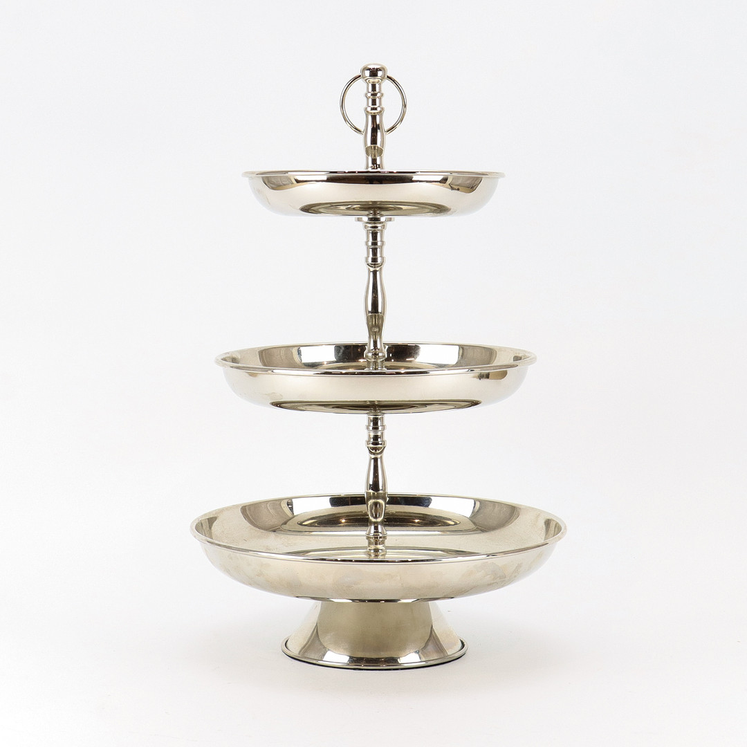 3694918. CAKE DISH Newport, white metal.