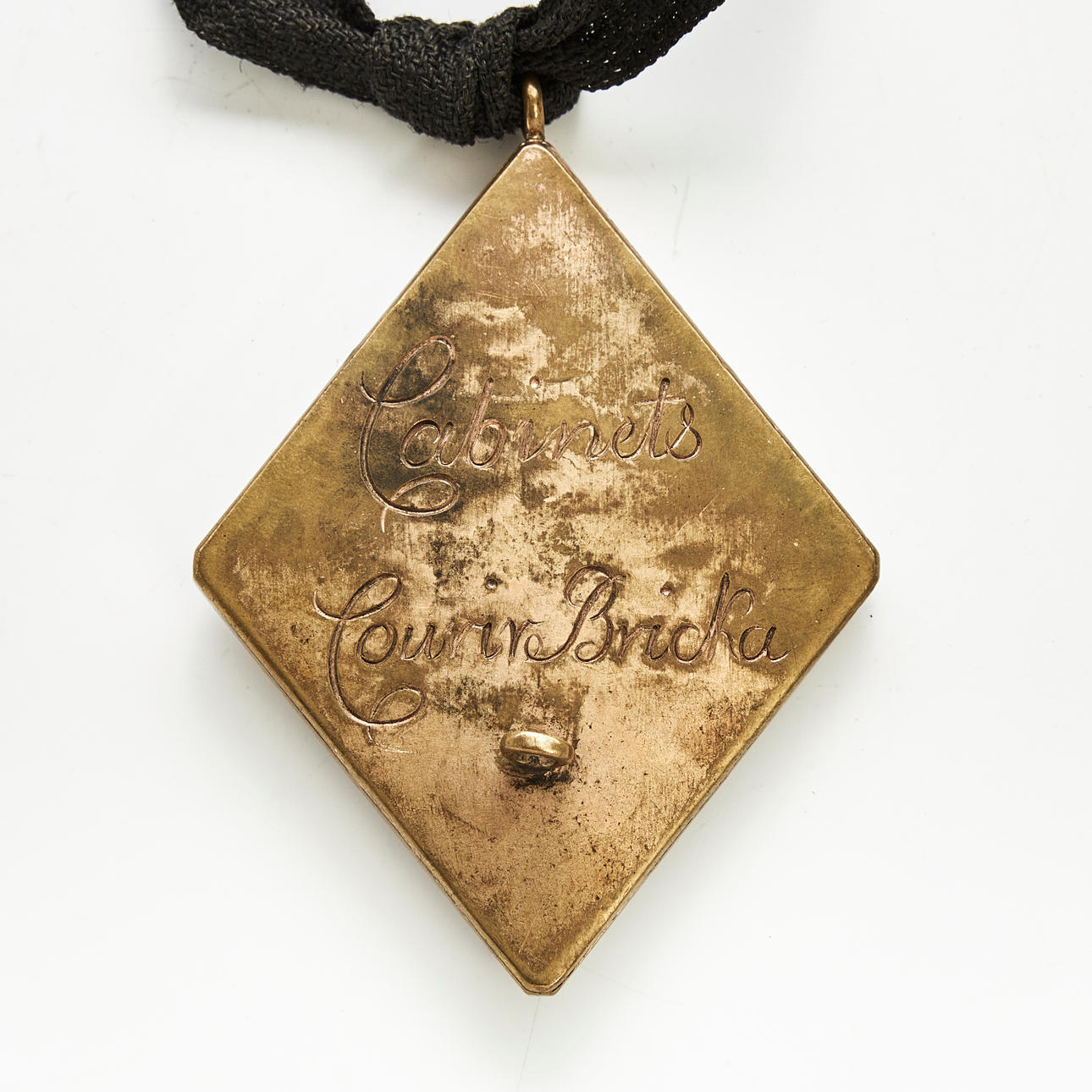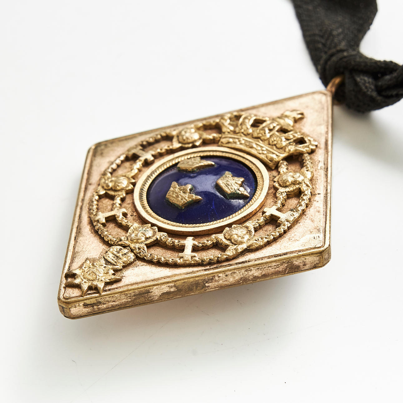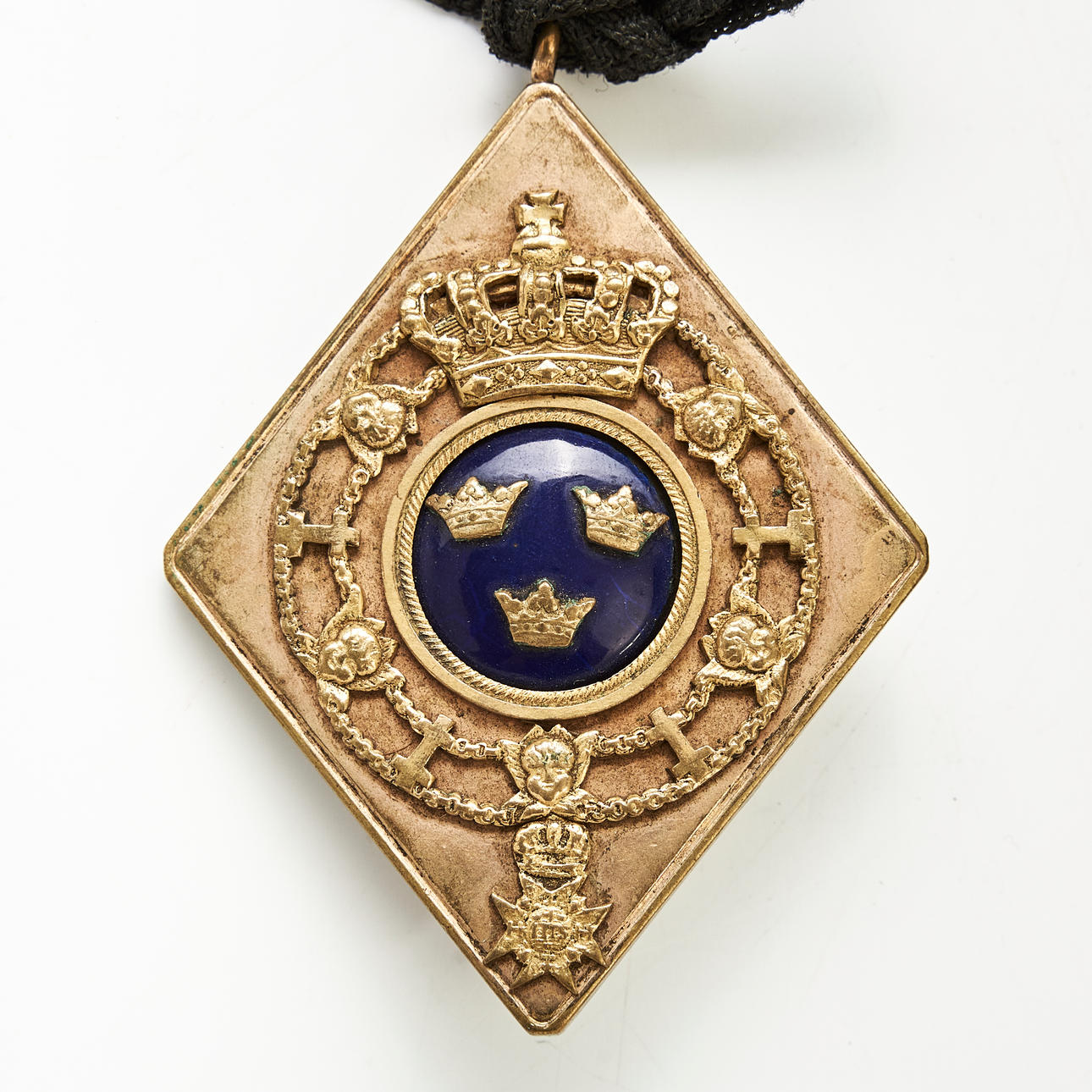 Gilt brass with decoration of Sweden's small coat of arms, marked on the back “Cabinets Courir Bricka”, height excl ring approx. 8 cm.