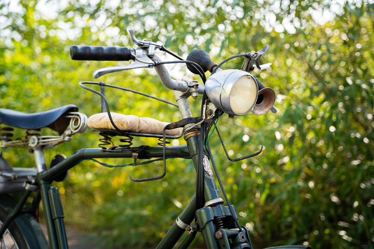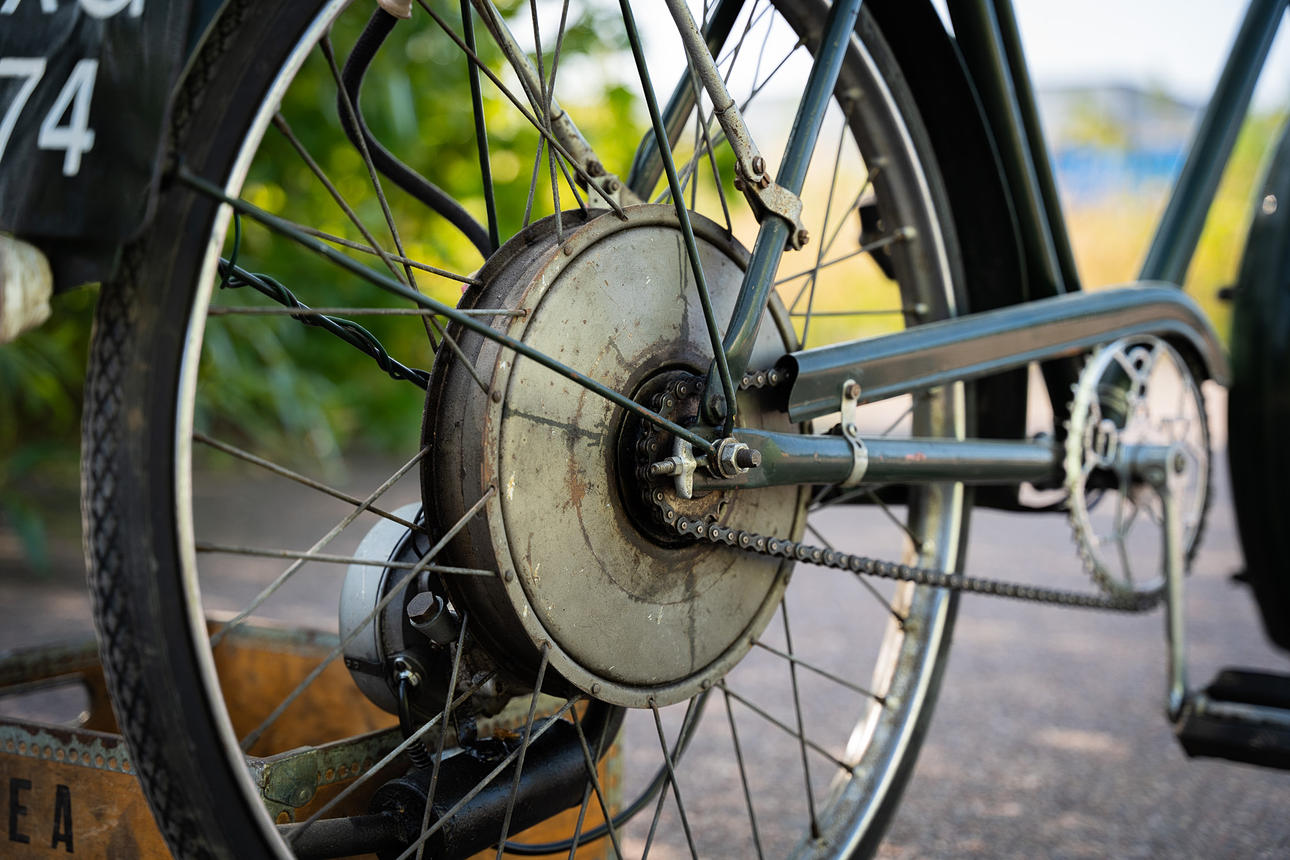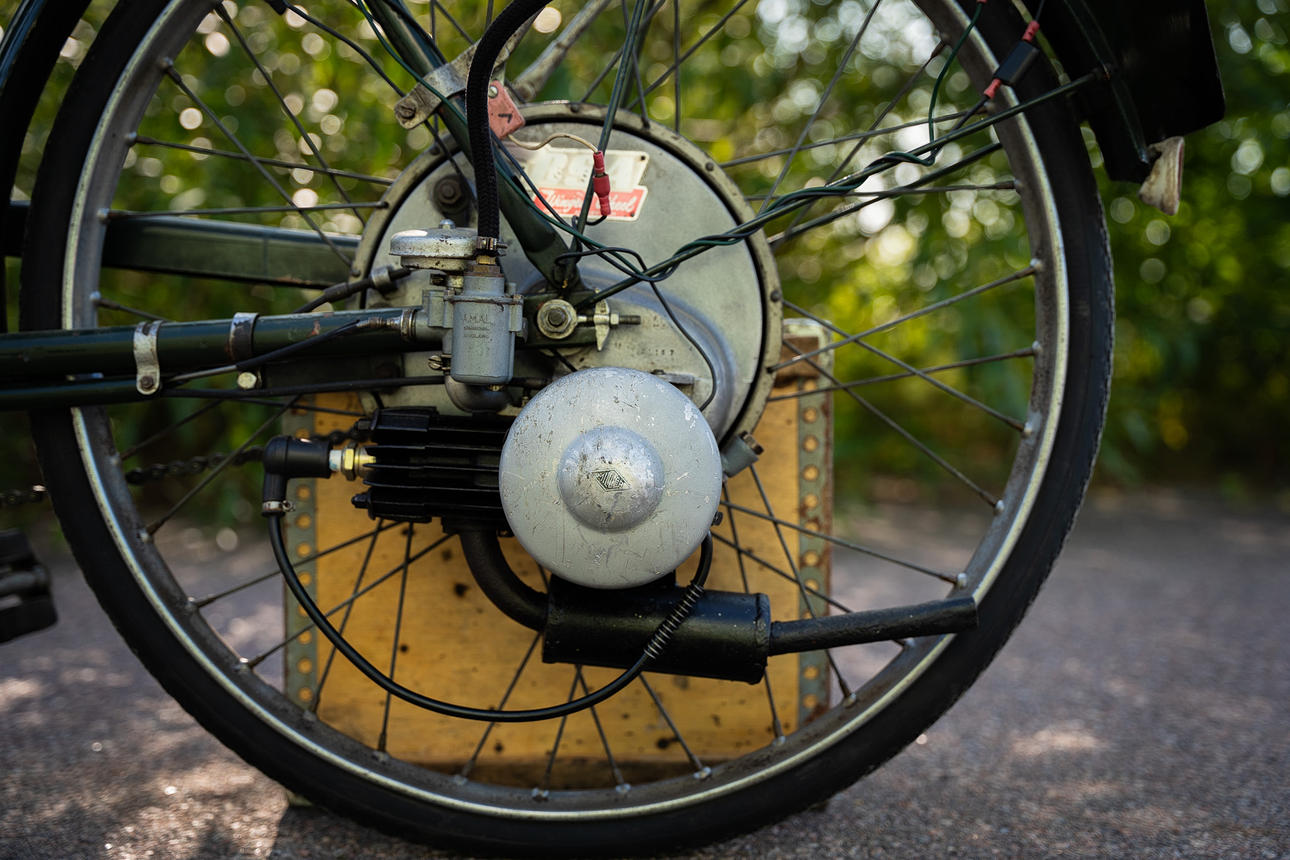 Auxiliary motor mounted on BSA bike.
