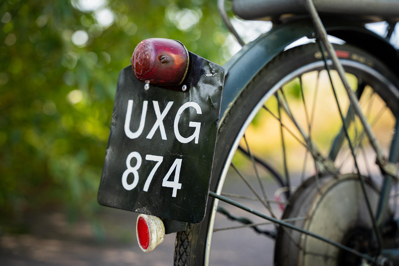 Registration number: unregistered, older UK tax receipt UXG874 sitting mounted