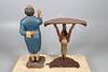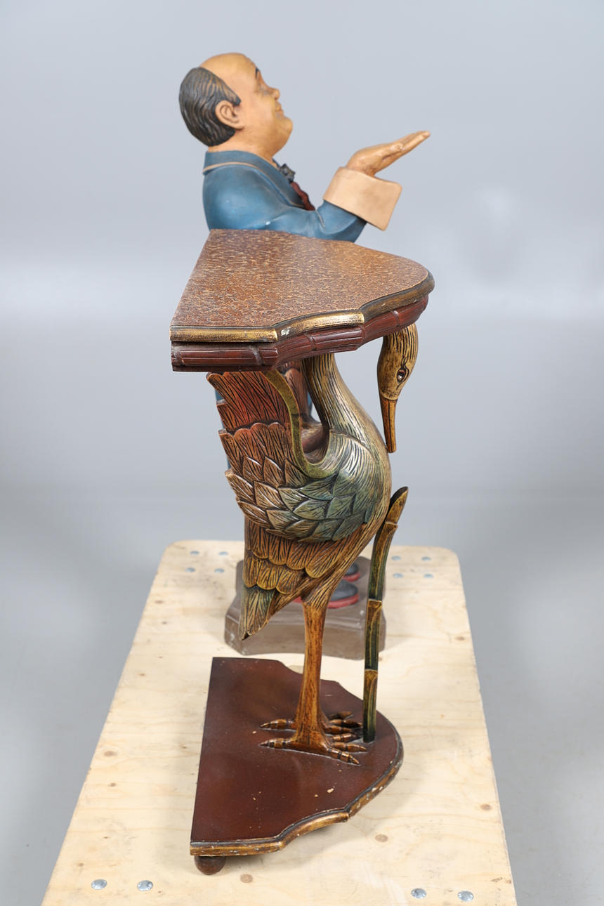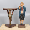 A painted wooden hall table, in the shape of a Pelican or Stork supporting a half moon shaped top (75cms high, 59cms across). Also with a modern shop dumb waiter (97cms high). (2).