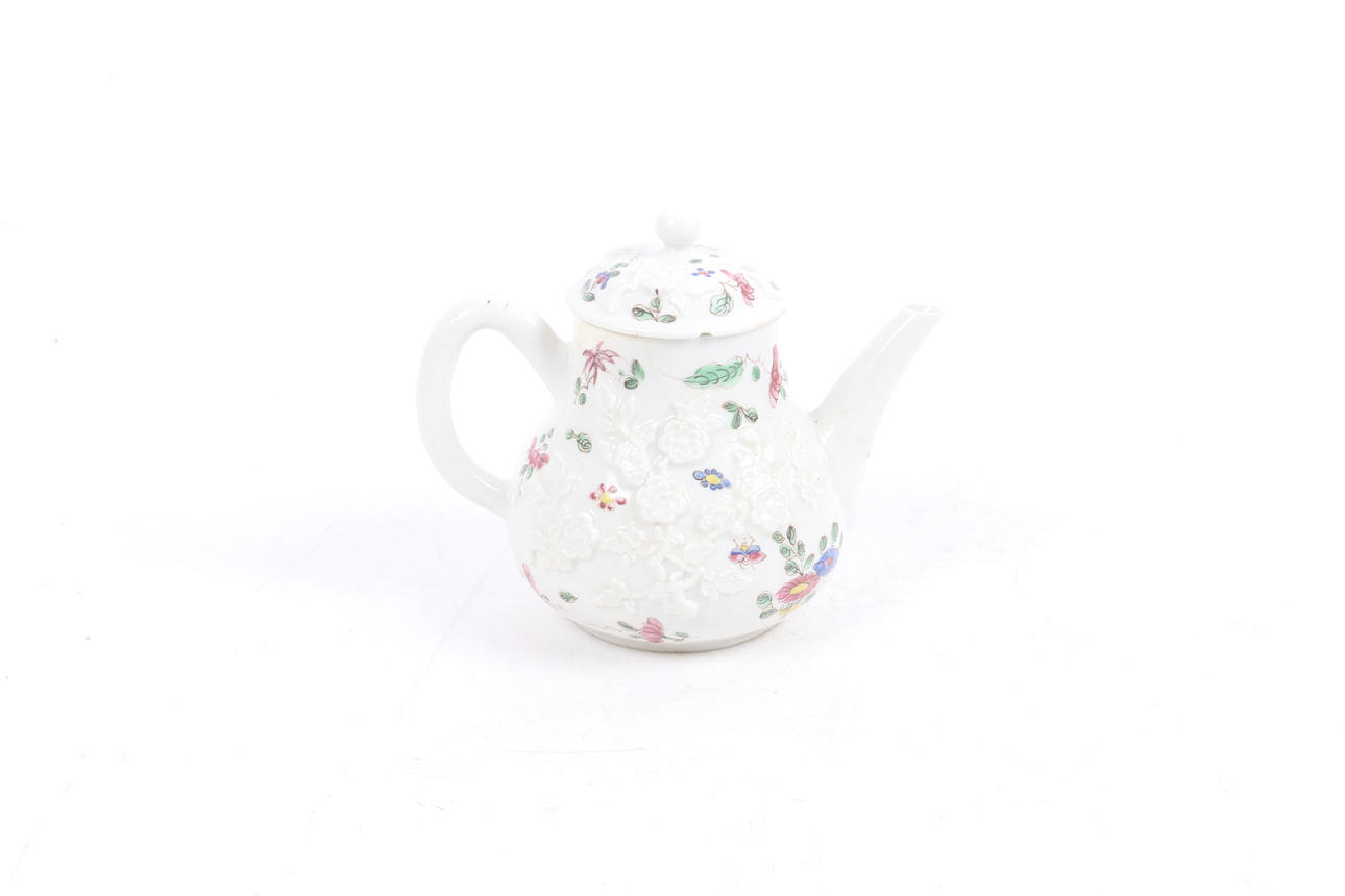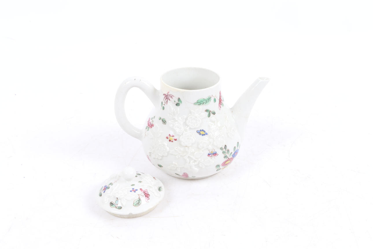 AN 18TH CENTURY BOW PORCELAIN TEAPOT.