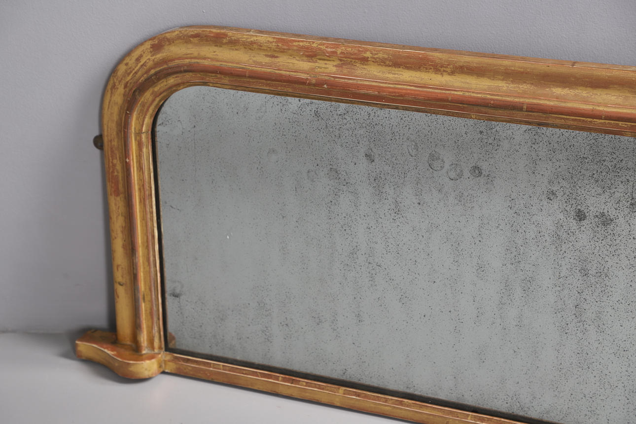 A VICTORIAN GILT FRAMED OVERMANTLE MIRROR.