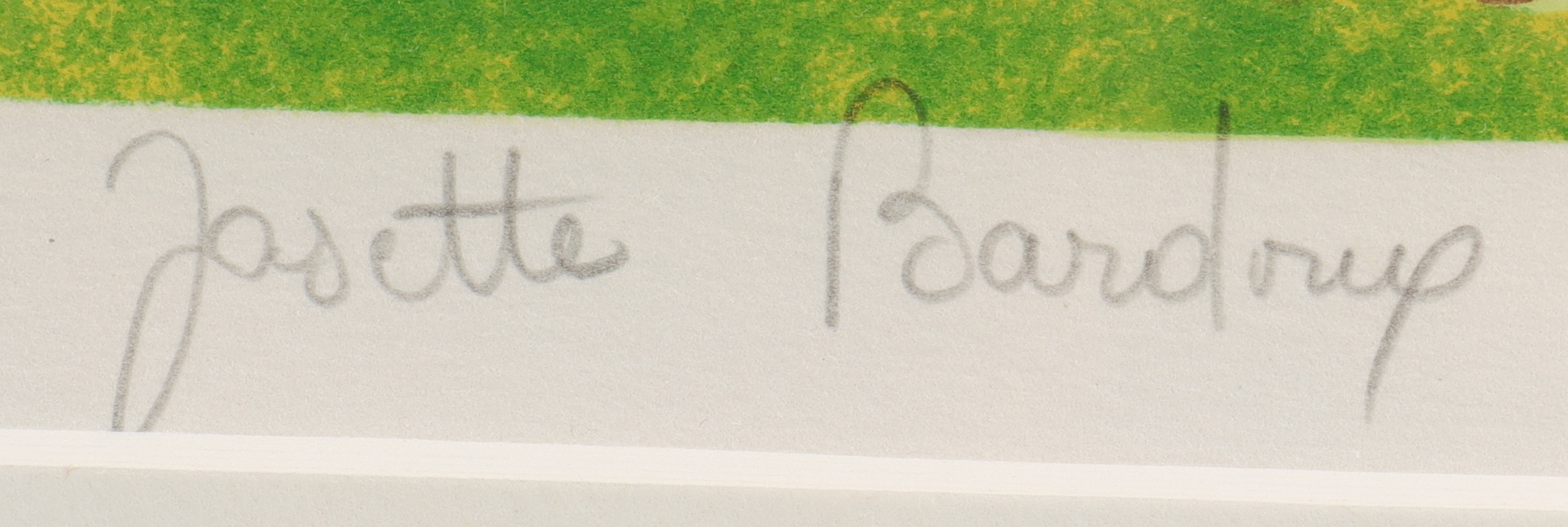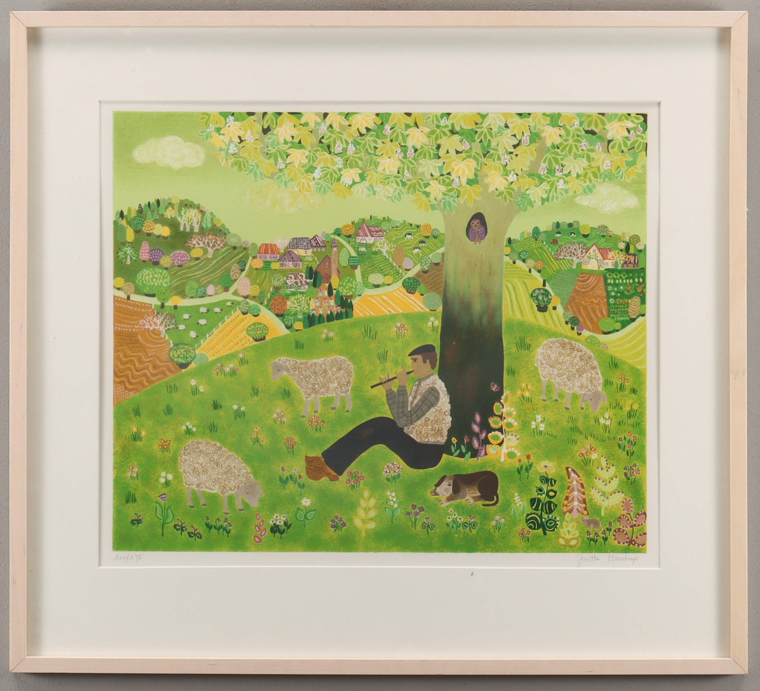 3707154. JOSETTE BARDOUX. Shepherd under trees in landscape.