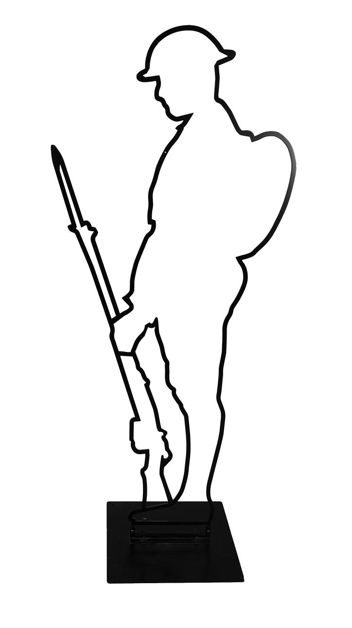 Memorial silhouette figure to a First World War 'Tommy' , black coated aluminium, with base, height approx 182cm (6ft).