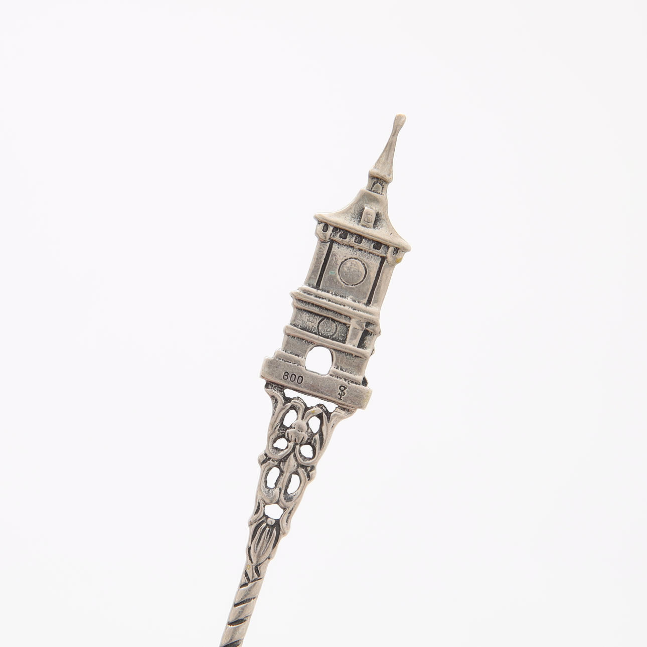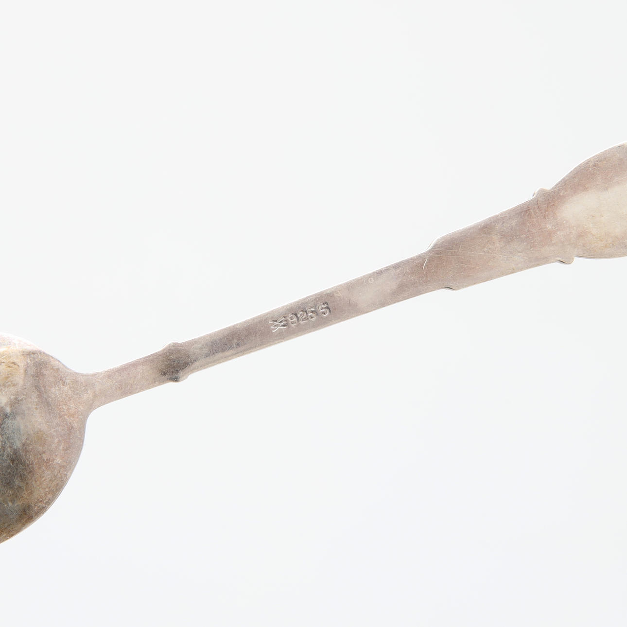 Coffee spoons (incl. ' Haga”), souvenir spoons, coins, fish shovel. Length 9 - 31 cm.