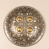 Iron shield with etched and engraved decoration. late 19th century/early 20th century. Width 38 cm.Indo-Persian.