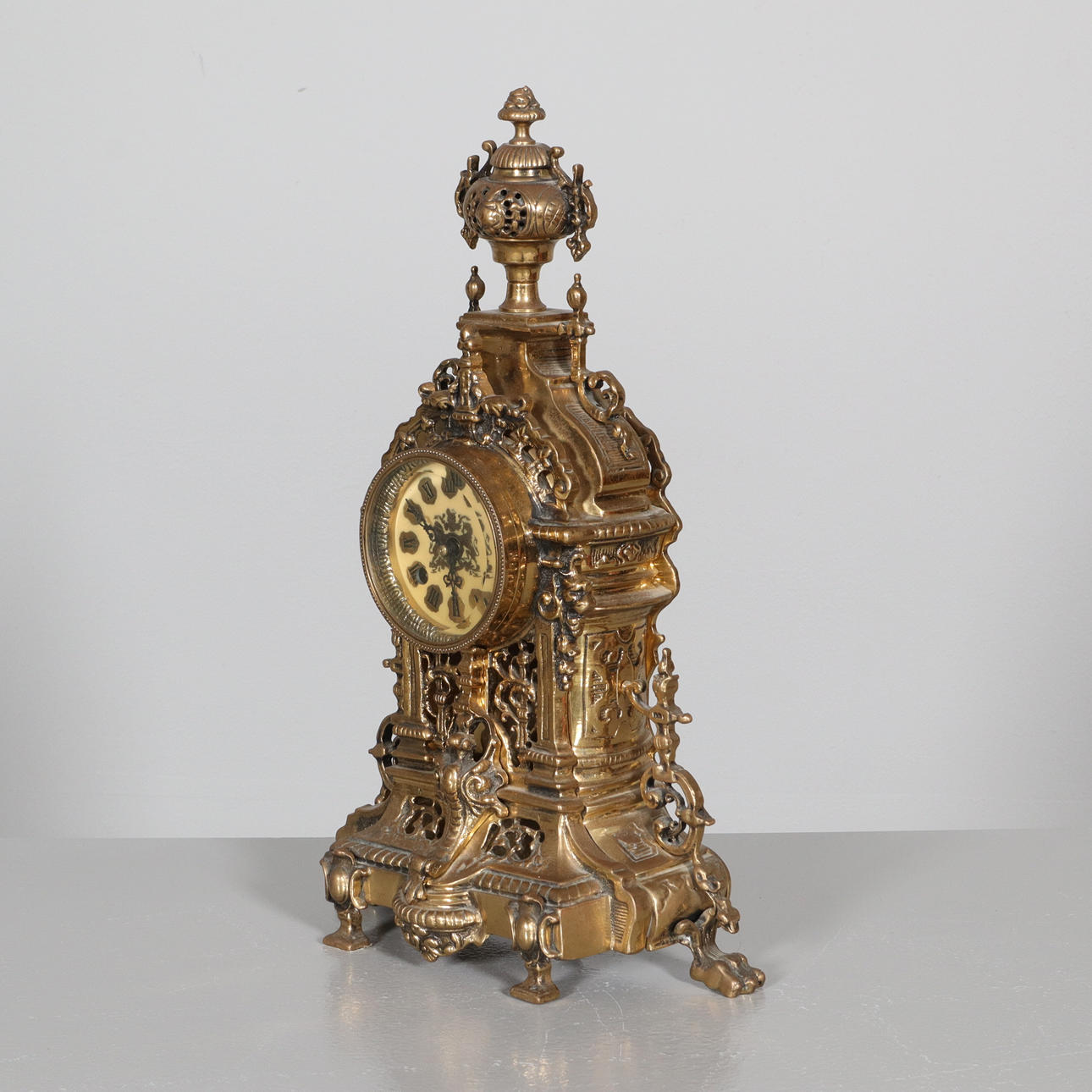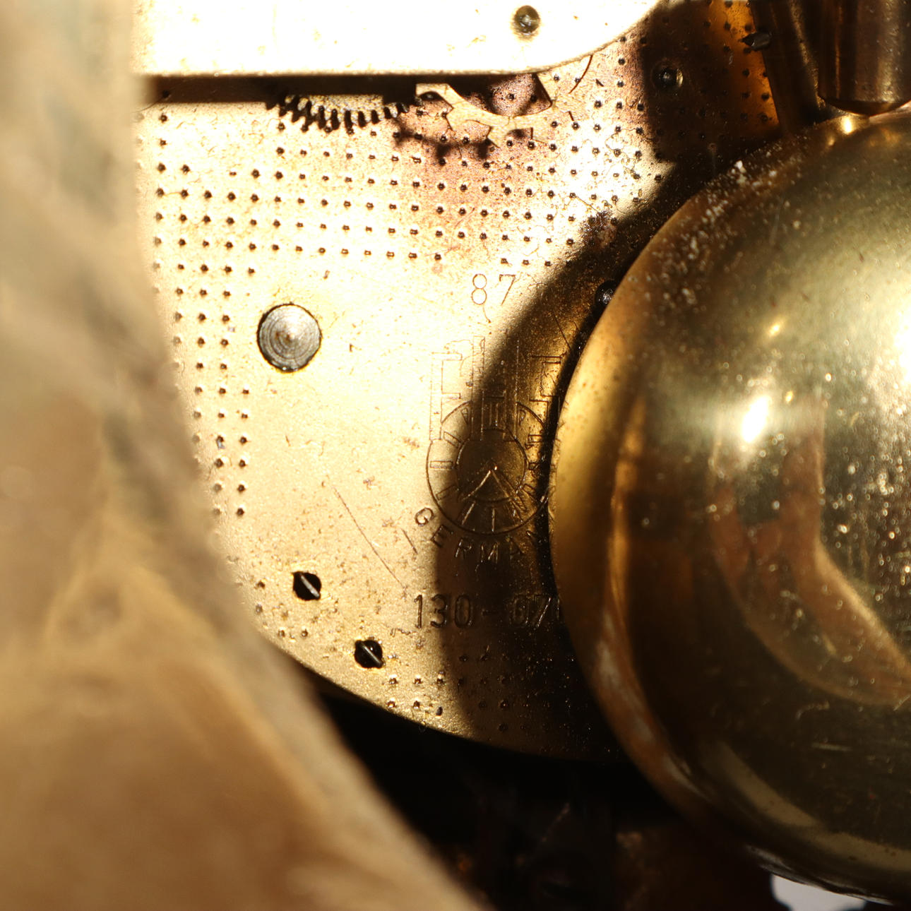 Normal wear and tear, damage metal, pendulum missing. Not tested, no function warranty.