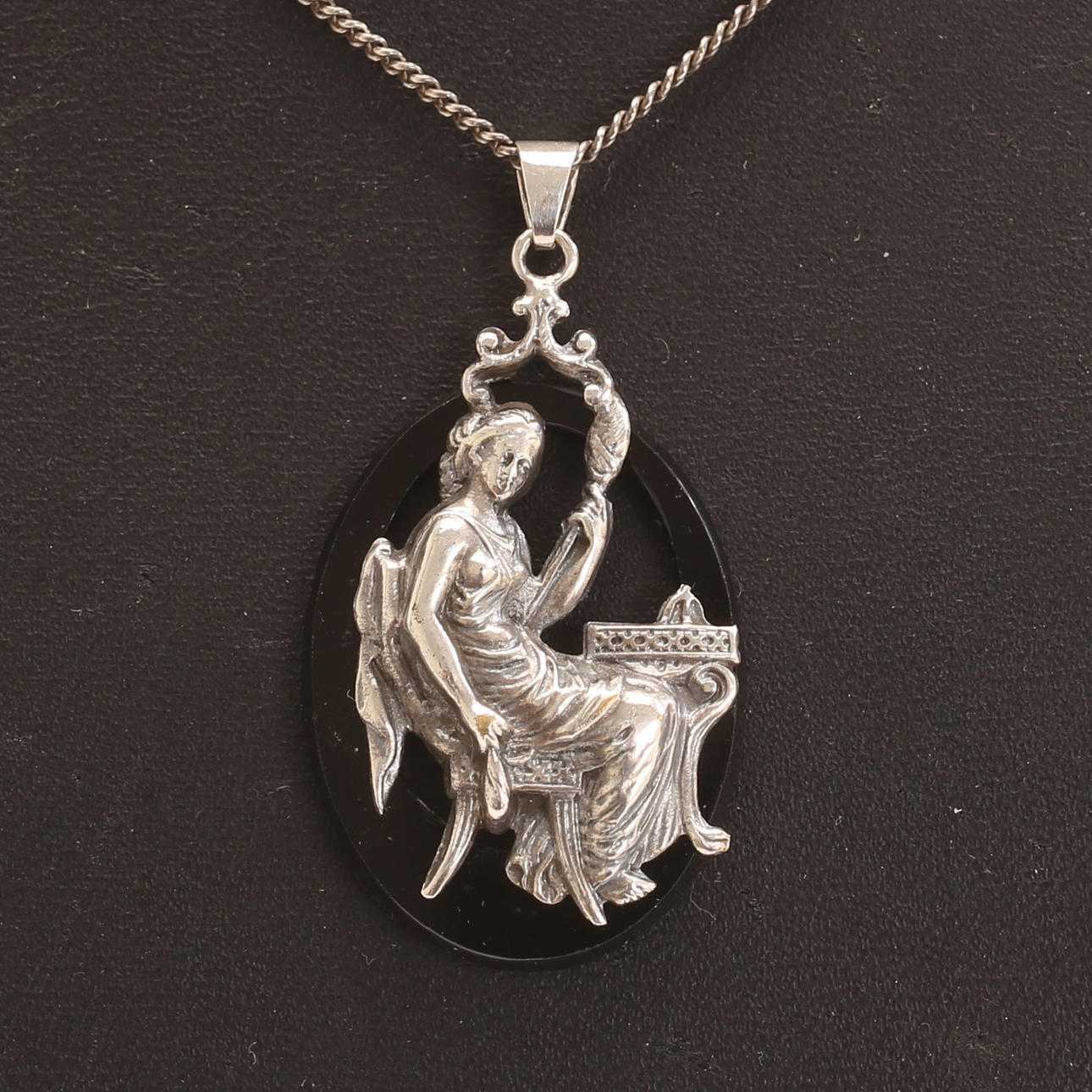 3712219. BROOCH. NECKLACE WITH PENDANT. Silver.
