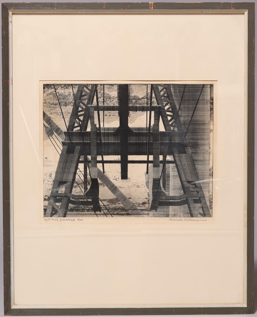 Erase, sign. and dat. in lead Rasmus Nellemann 1960, Own print sample print. 30 x 38 (65 x 54) cm.