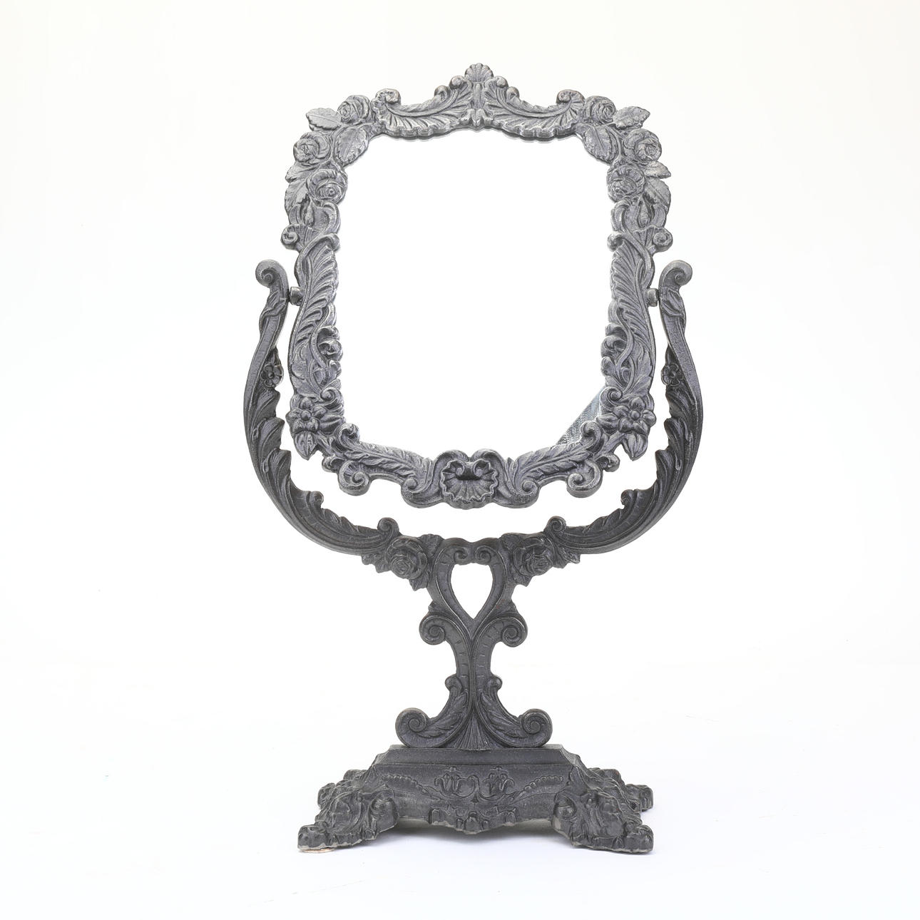 3712696. TABLE MIRROR on base, cast iron. Letters Use Kilsmo.