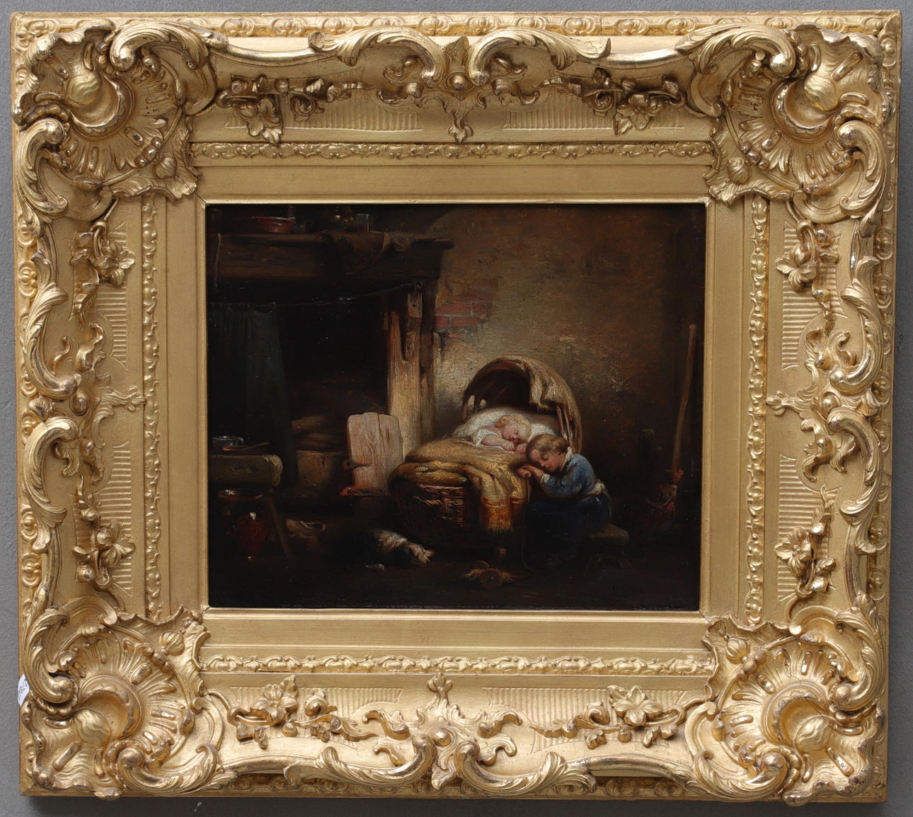 “The child is cradled”. Approx. 22x26 cm.