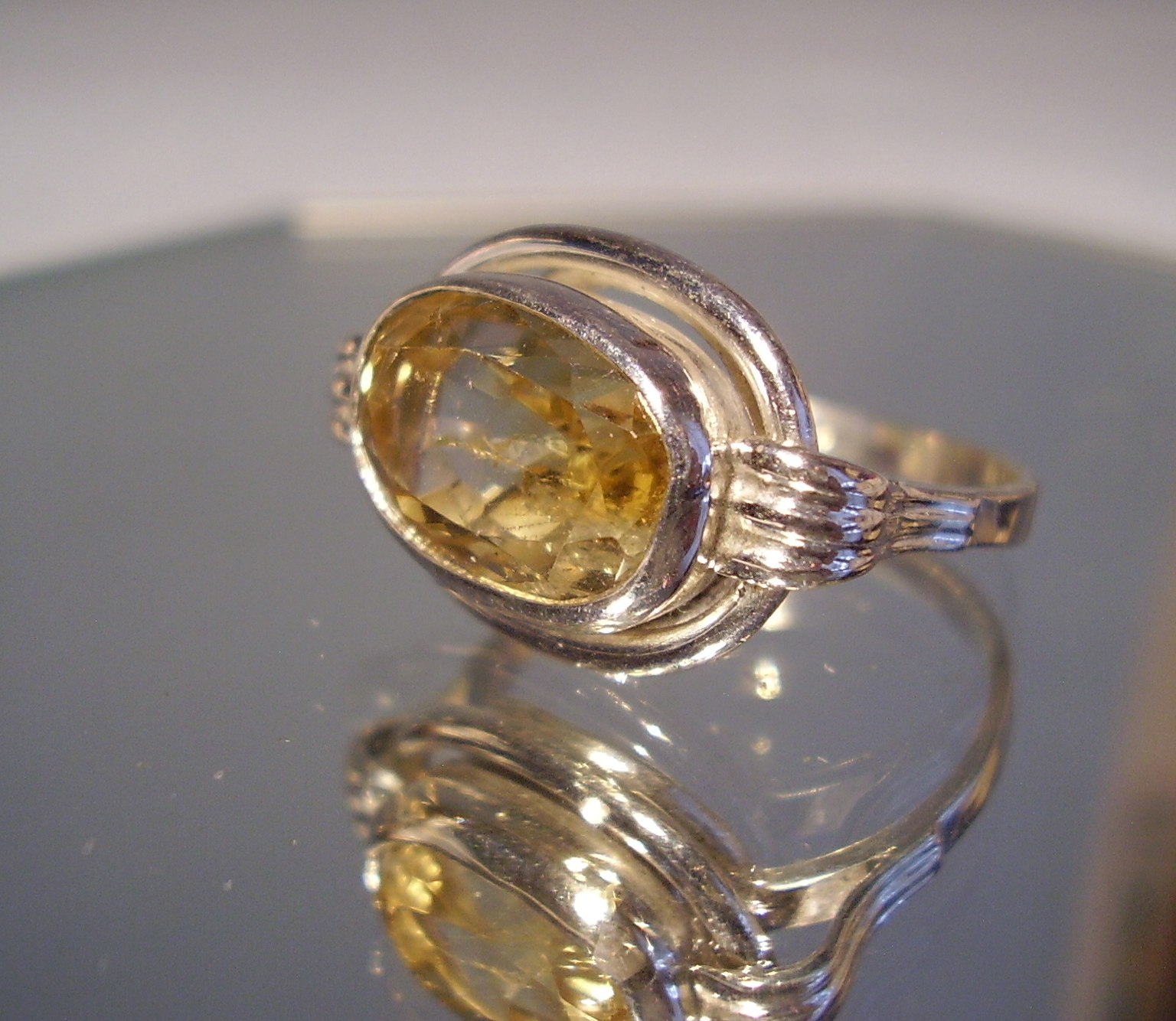 371464. ART DECO RING WITH CITRIN Silver 835 citrine 5.0 ct.