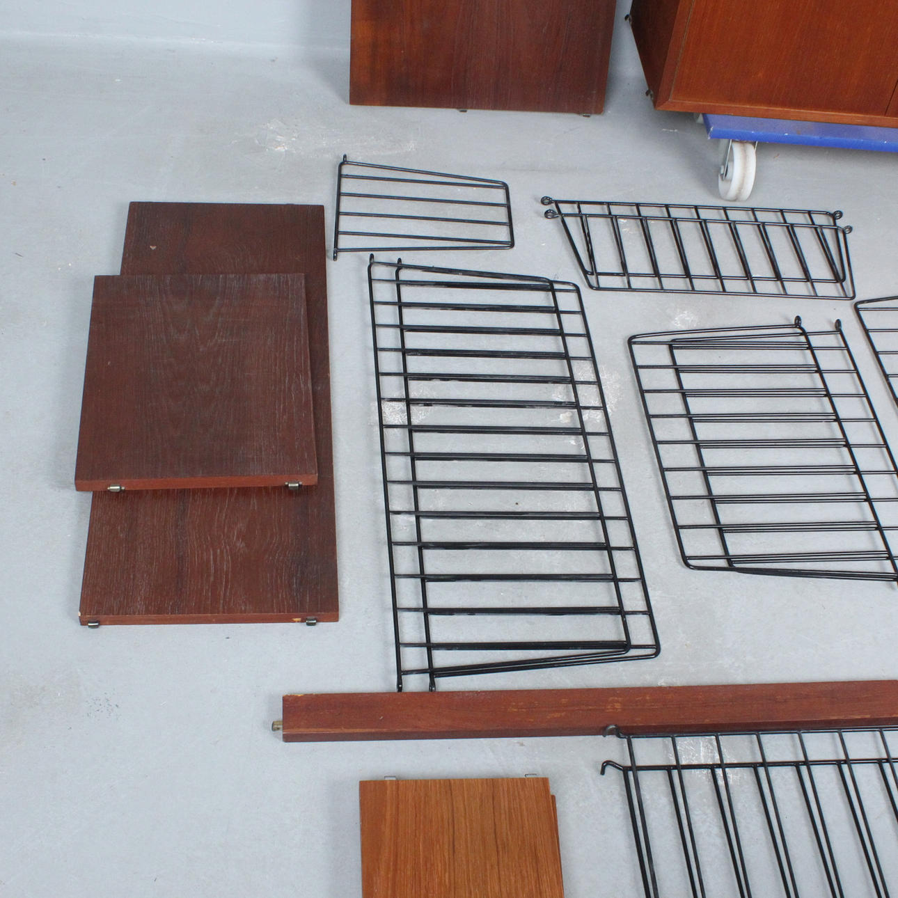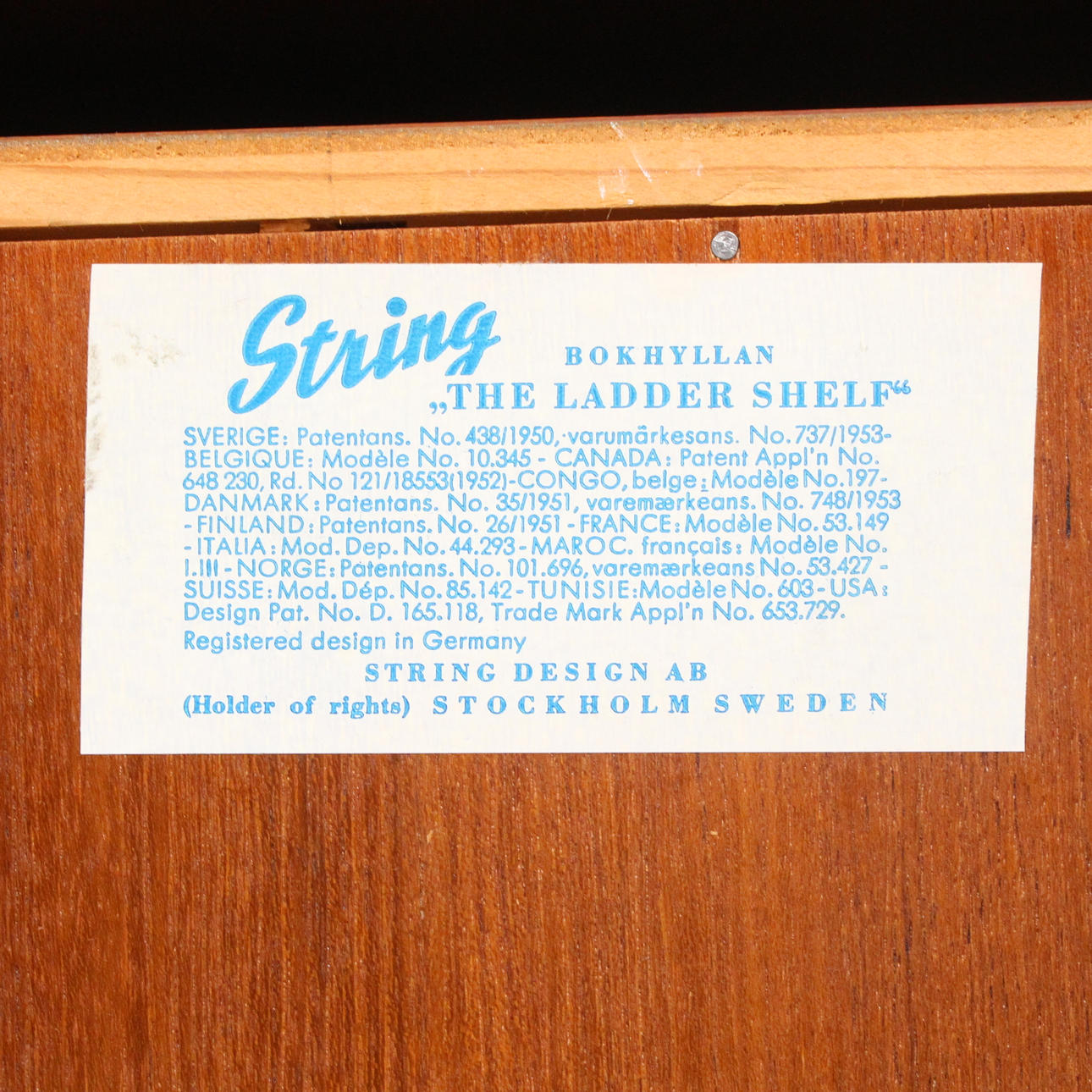 Kajsa & Nils' Nisse 'Strinning for String, modular shelving system/ String shelf, 'The ladder shelf', teak, Sweden, design from 1955,