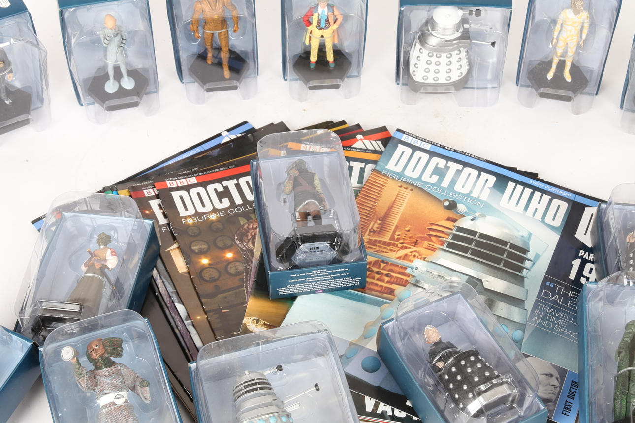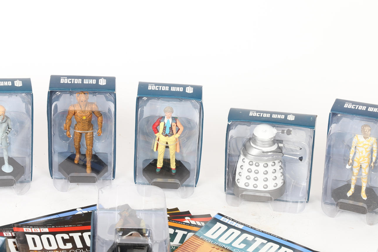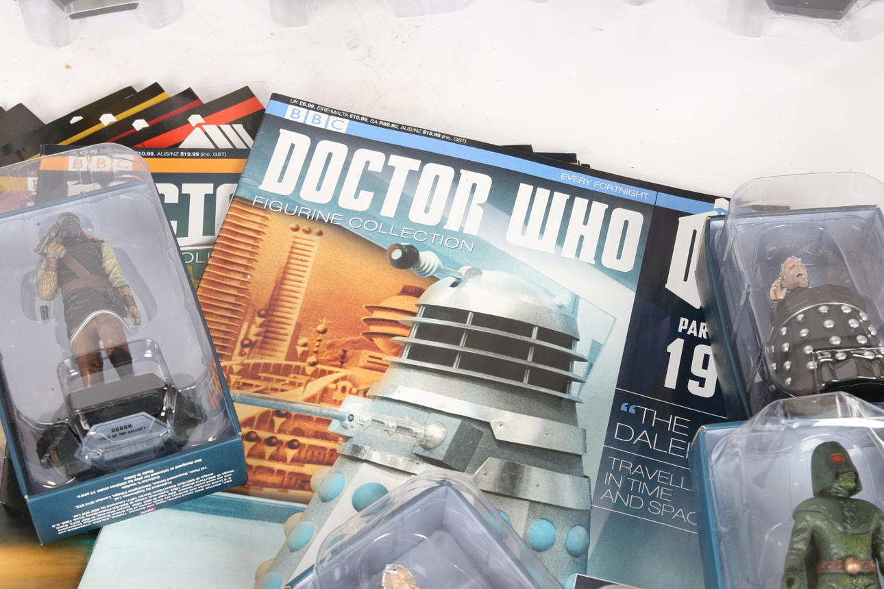 To include Sensorite (62), Sea Devil (30), Wooden Cyberman (72), Davros (158), Kahler Tek (31), Madame Vastra (33), The Eight Doctor (60), The Sixth Doctor (65), Azaxyr (92), Dalek Sec Hybrid (57), Ogron (108), Axon Man (71), Davros (178), Dalek (19) and New Paradigm Dalek (64), often with their relevant magazines. (15).