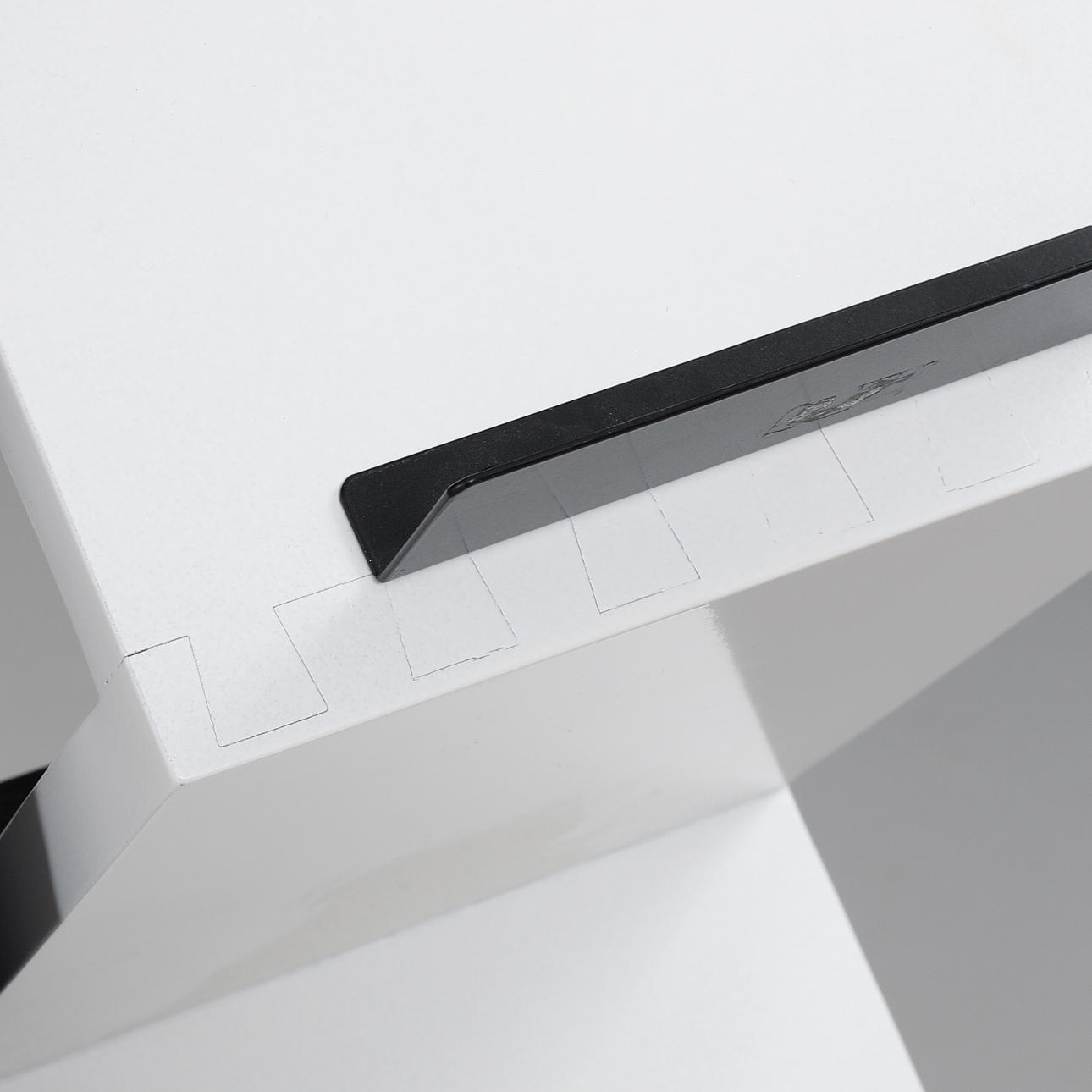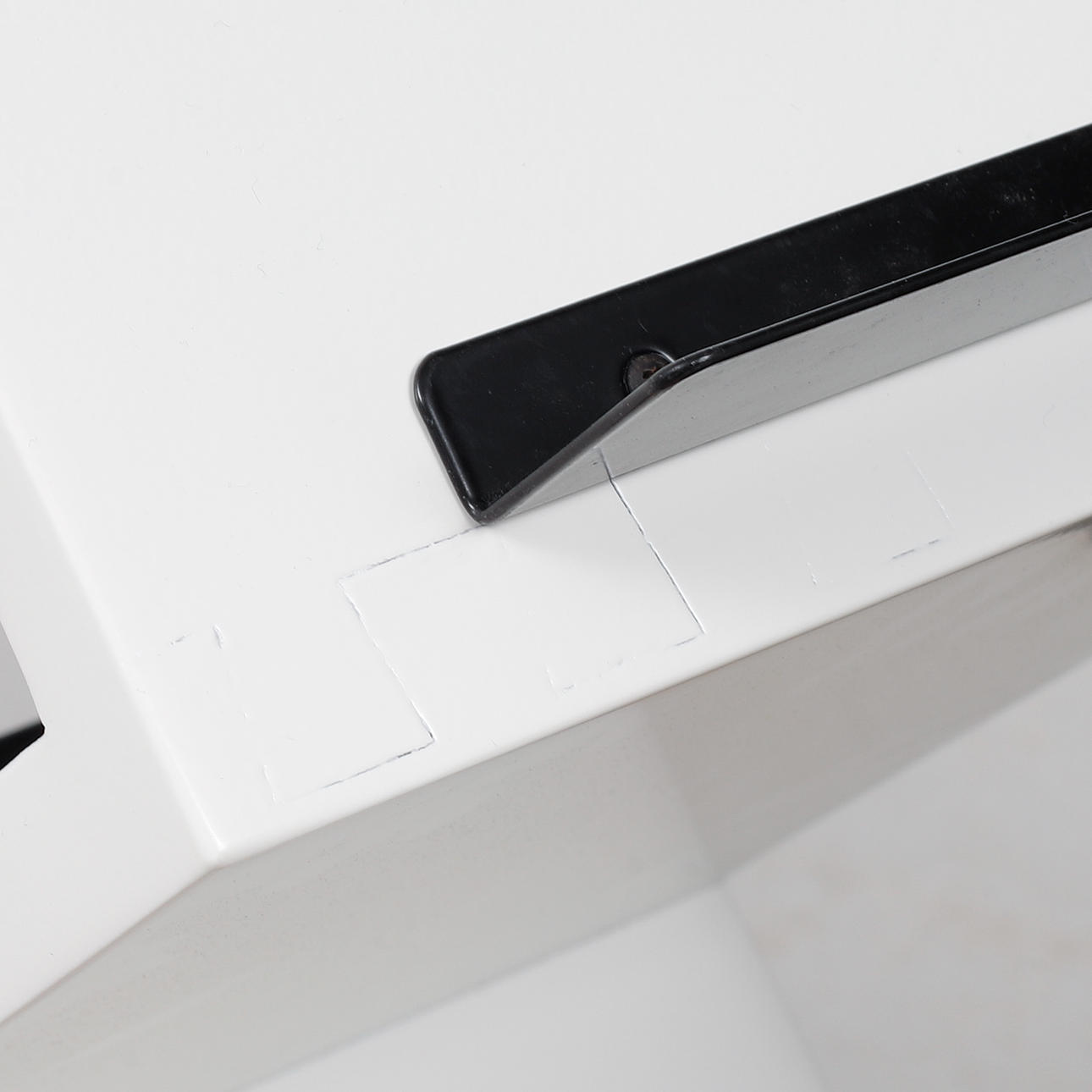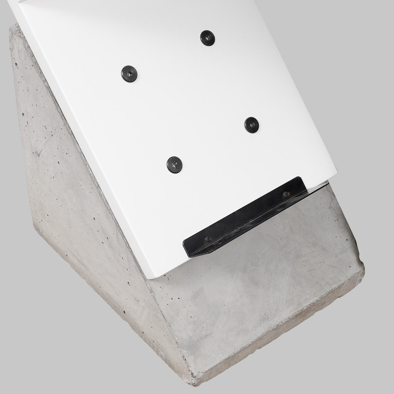Foundation in concrete. White lacquered shelf. Length 27, width 35, height 155 cm.