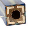 Blue, brown and beige harp fur glaze. Detail in teak.