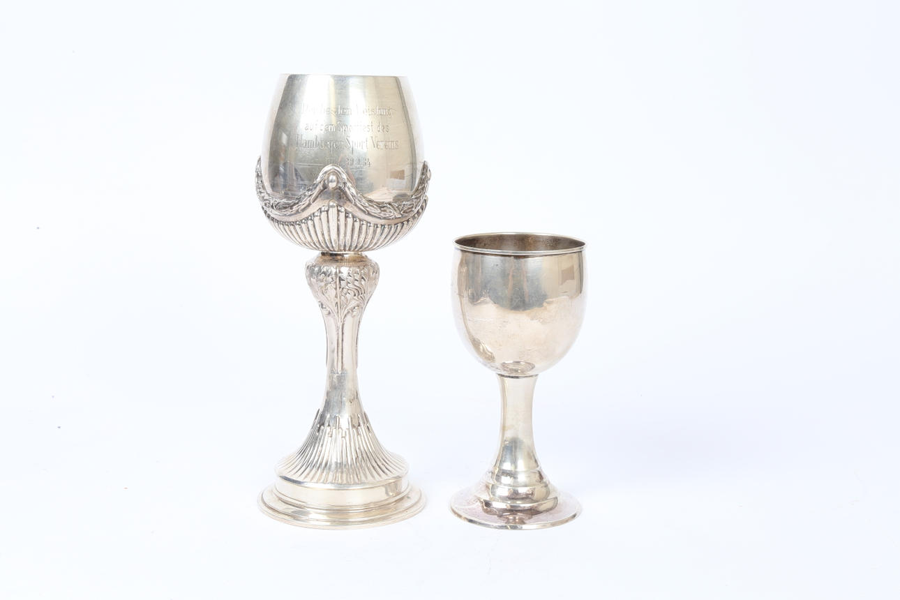 3733758. TWO GERMAN .800 SILVER TROPHY CUPS (2).